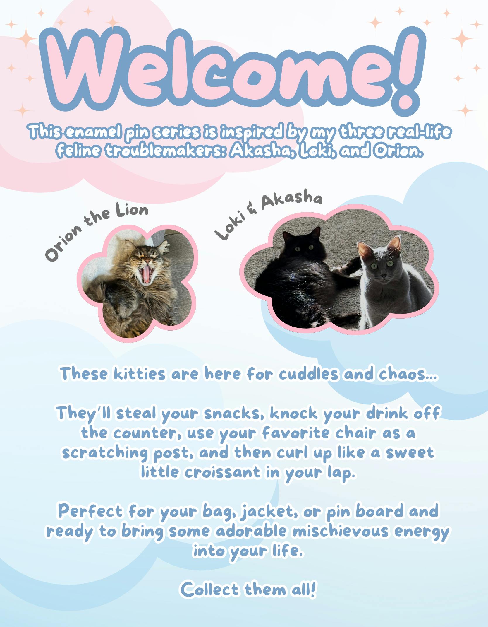Adorably mischievous kitties ready to steal your heart. The purr-fect addition to your pin collection!