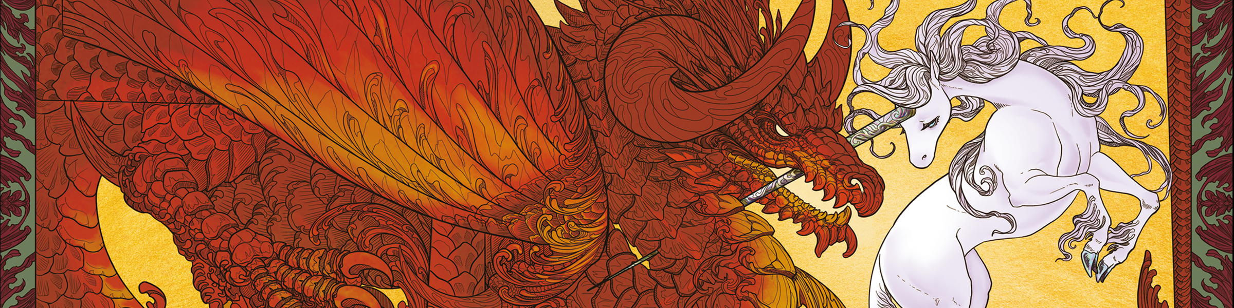 The Duel - An image of a Dragon and a Unicorn fighting on a dot grid journal