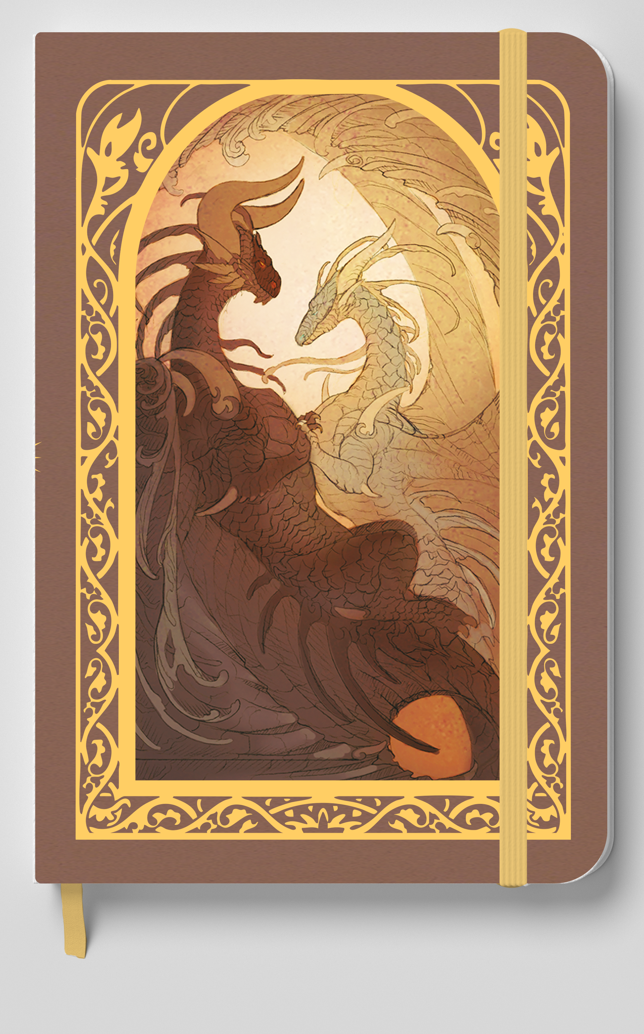 The Lovers - A black and a white dragon embracing on a dot grid journal