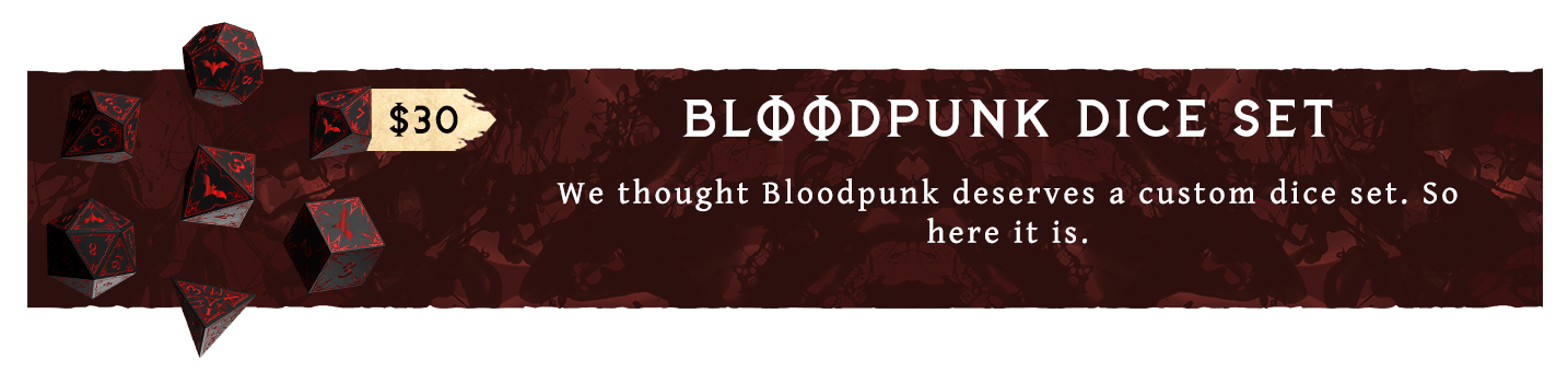 This campaign features new items for the world of Tolia, along with the fan-favorite original Bloodpunk edition for anyone who missed the previous crowdfunding run. You can get them as additional add-ons. Their standalone prices are listed below.
