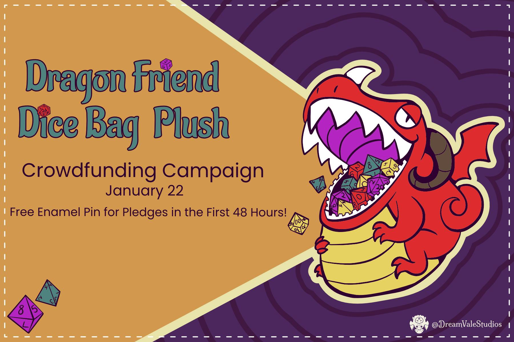 Mark your calendars for January 22, 2026! We are thrilled to introduce our Dragon Dice Bag Plush! This is a 7-inch boi designed to gobble up and protect your precious dice hoard.