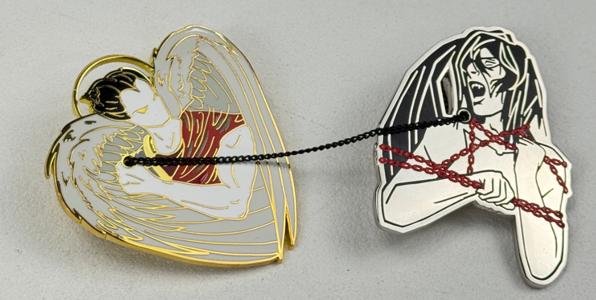 Hello all! Things are moving forward; my manufacturer is a little bit behind but has promised to have a sample in a day or two for me to confirm that the collar pins are correct. In the meantime, the collab pin sample has come in!