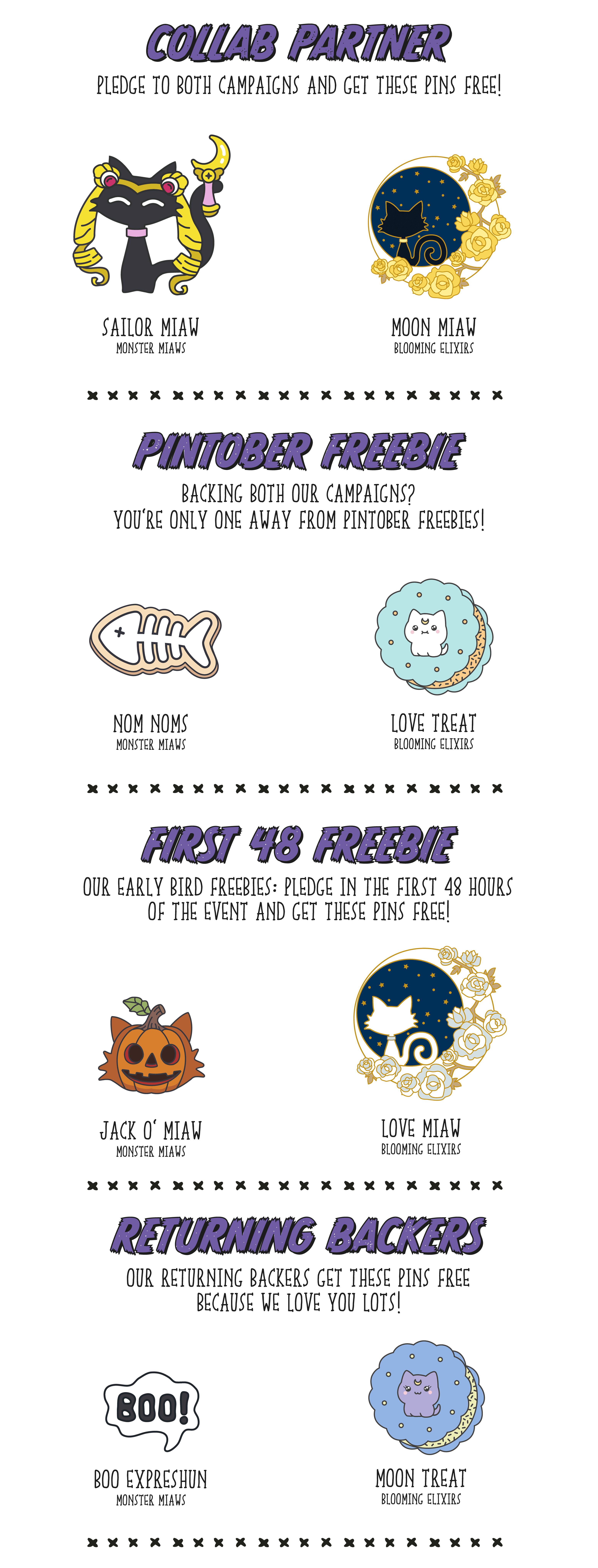 Returning Backers โ Back again? We knead you! As a thank-you, returning backers will receive Moon Treat and Boo Expreshun, because we love you meow & forever.