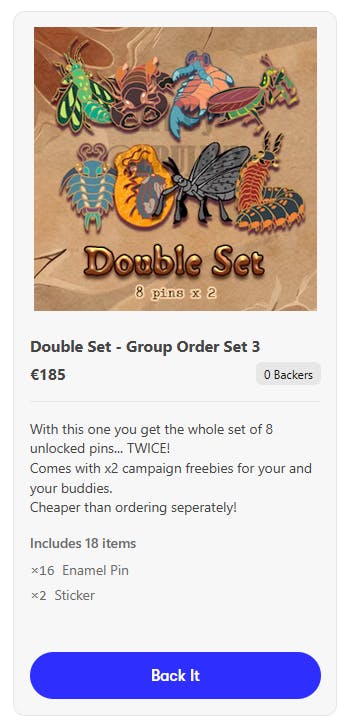 With all the pins unlocked that means that the Whole Set Pledge is now unlocked too. AND, as promised, the double set for group orders as well.