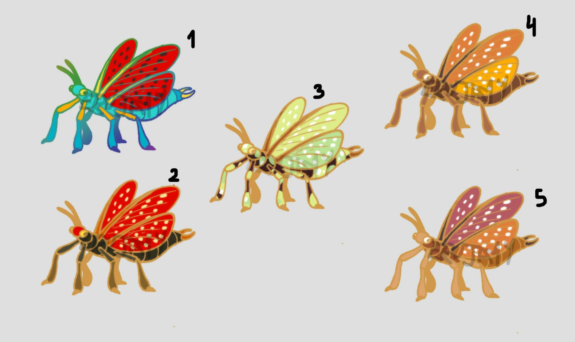 There's five options here, with different metals, colours, and techniques. All of these are based off of today's species. The only consistency in all of them, will be the screenprinted spots on the wings.