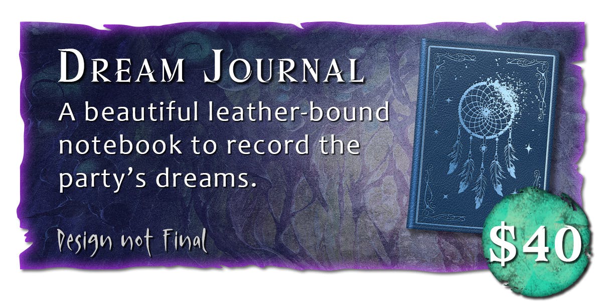 From the handy Dream Journal that lets the heroes keep track of their subconscious adventures to the dreaded Blade of Recurring Nightmares, Dreams & Dread has treasures beyond the heroes' wildest dreams.