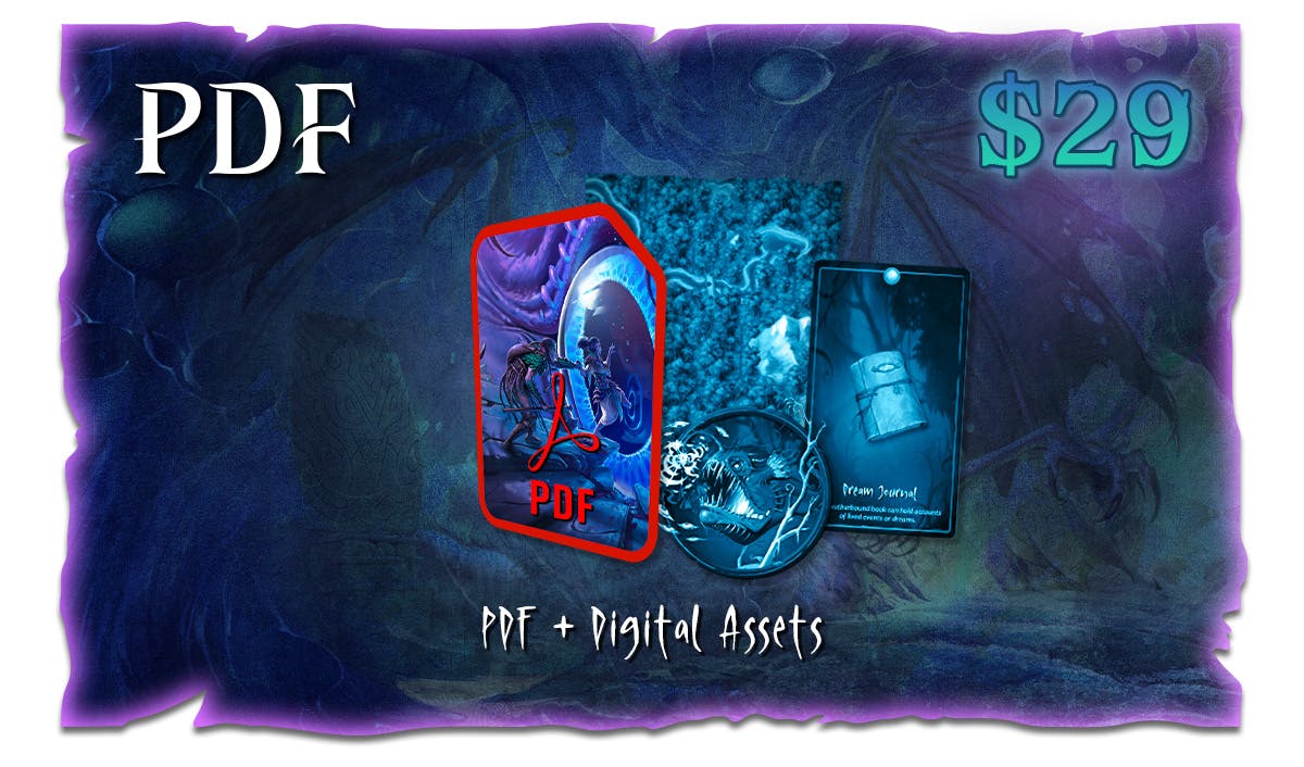 With Dreams & Dread by your bedside, you – and your players – can unlock new adventures beyond your wildest dreams, as you explore the primordial, dream-like Vale of Ur, and its many nightmarish monsters, dreamy treasures, and exciting new player options.
