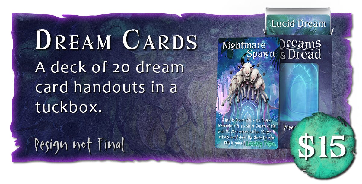 Dreams & Dread introduces guidelines for running Dreamscapes and when and how to use dream encounters – as well as plug-and-play dream scenarios that make the story more personal and immersive for the players.