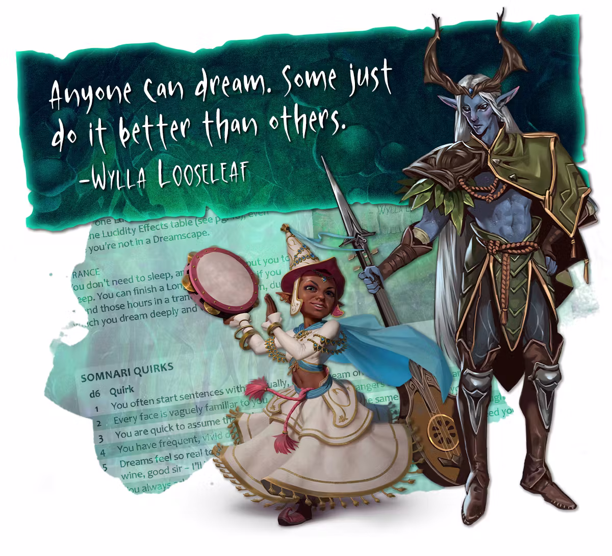 Dreams & Dread includes new subclasses, species, feats, and spells for 5E D&D. Wield the power of the subconscious as a bard from the College of Dreams or play as the wild Anthari, who are as beautiful as they are deadly.