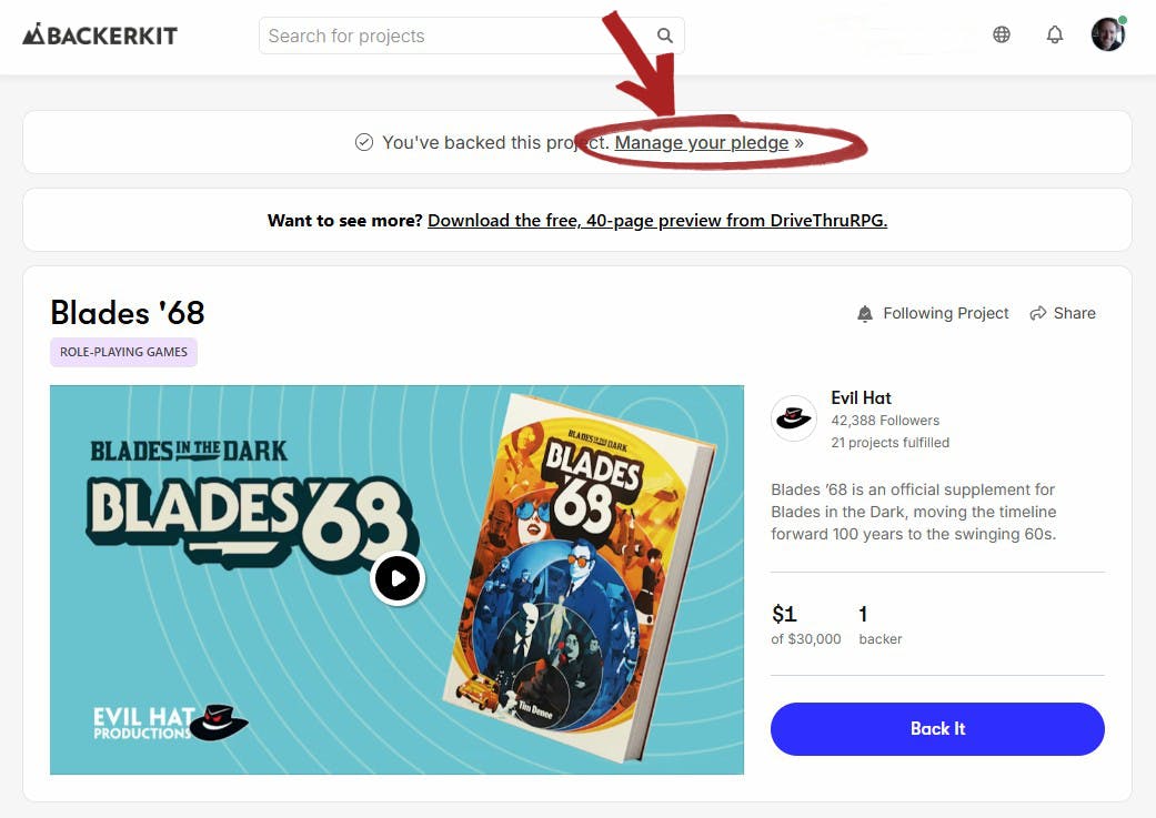 Thank you to all the backers of Blades '68! The Backer Prototype PDF and Roll20 Quickstartare available right now to all by selecting the Manage your pledge link at the top of the campaign page and scrolling down to Instant Access Rewards. It's everything you need to start playing the game right now!