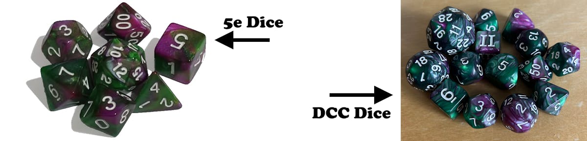 In addition to the adventures, we also offer 24" x 18" printed poster maps and our Seeds of (mis)Fortune dice sets (7 dice for 5e or 14 dice for DCC RPG). The DCC set also includes a custom magic item"Seeds of (mis)Fortune" insert, written by Julian Bernick.