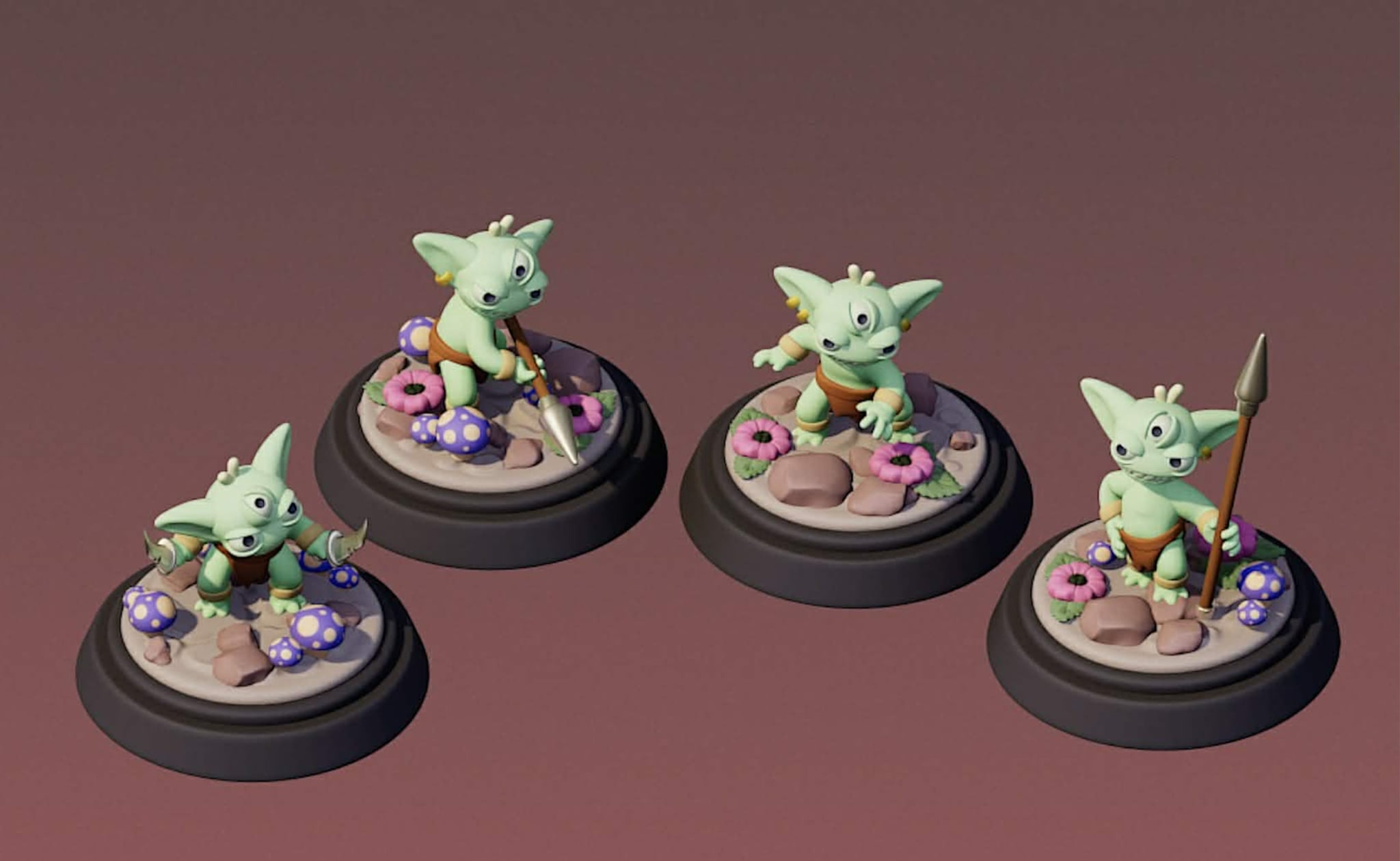 Since we already have a Carnivorous Cauldron mini, we decided to commission Raven to produce a set of Triglin minis as well.