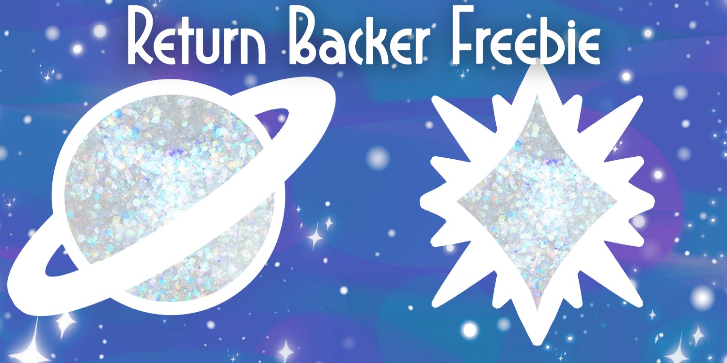 Back THREE or more Spaced Out campaigns (backing myself and my cross collab partner gets you almost all the way there!) to receive this cool 4" suncatcher sticker as a freebie!