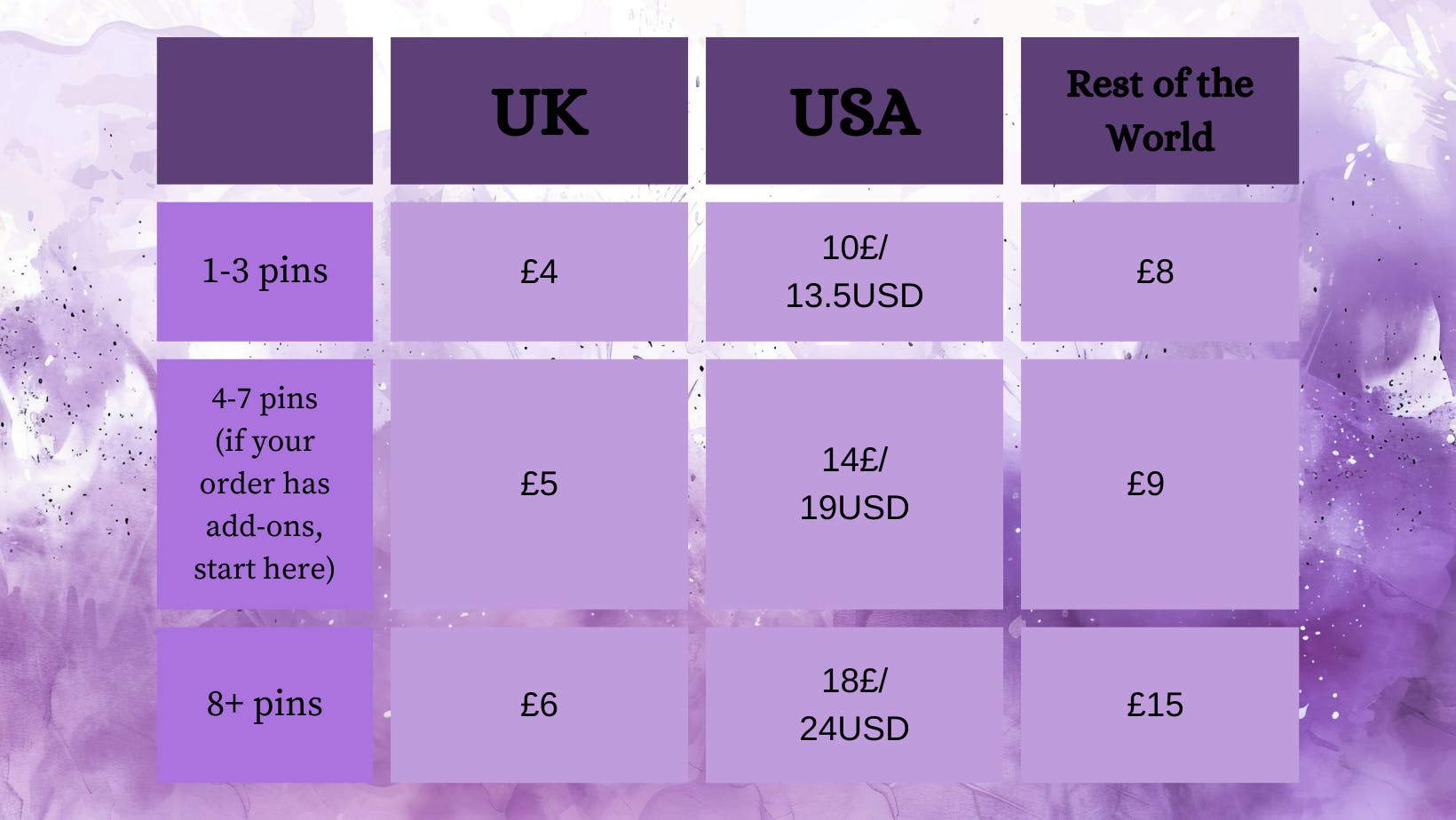Because this project will start in 2025 and end in 2026, please remember that shipping costs represented here are an estimate. I have included the yearly increase that Royal Mail applies every year. Parcels will be shipped untracked via Royal Mail. Shipping will be charged through the pledge manager AFTER the campaign when you pick the designs you'd like!