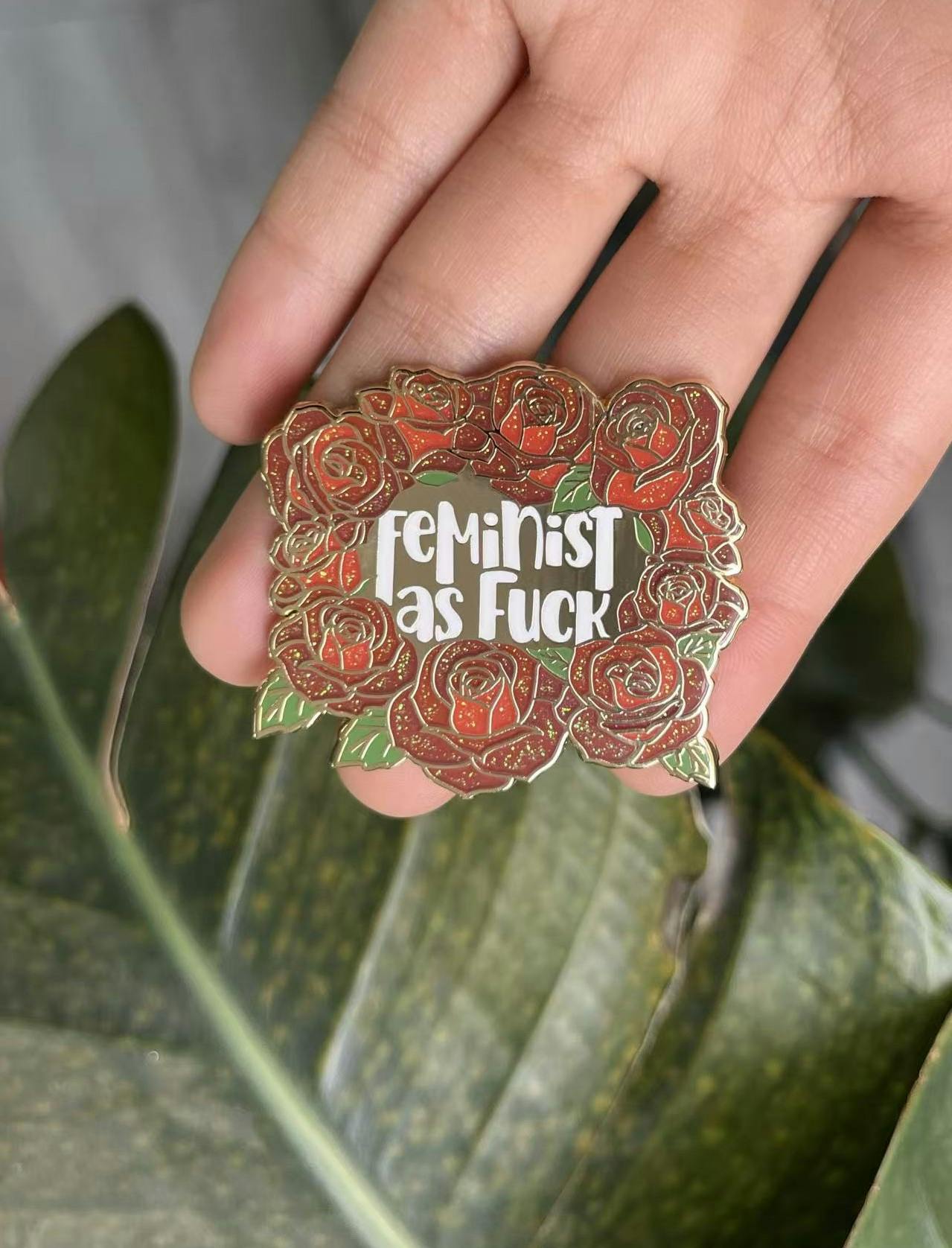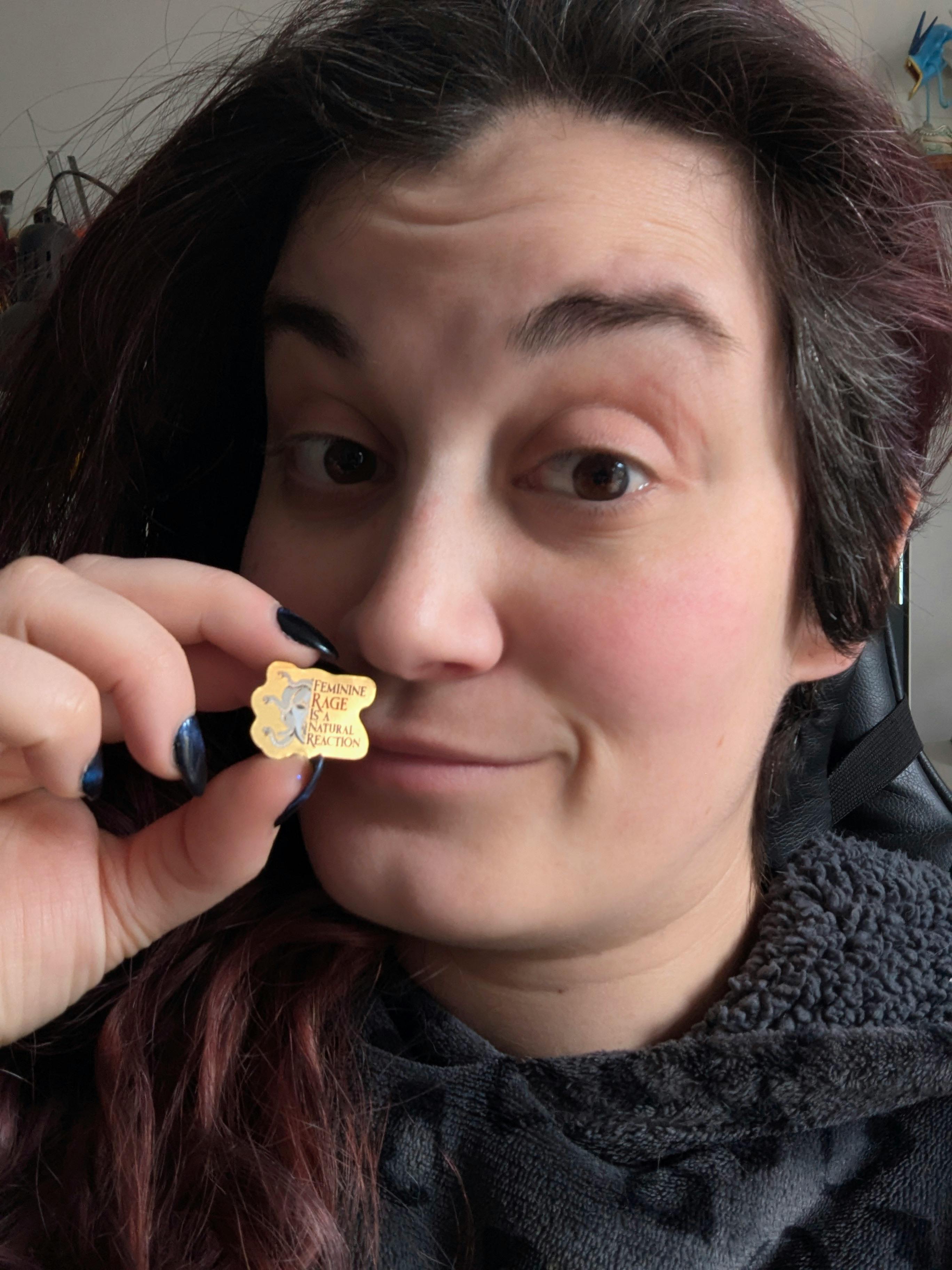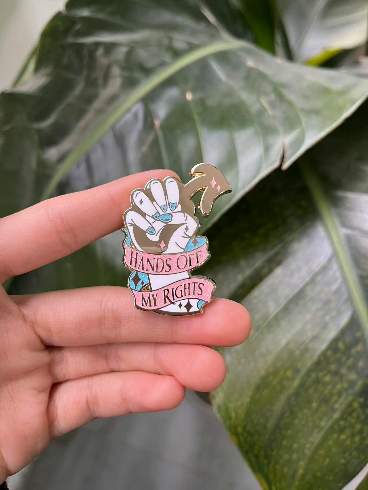 Third, the "more pride less prejudice" pin needed to be remade! It just didnt look great with the initial colours, and i asked my manufacturer to remake the plating to be more colorful. I also asked him to change the original enamel infill and reduce it so its only on the letters and not on the flowers.