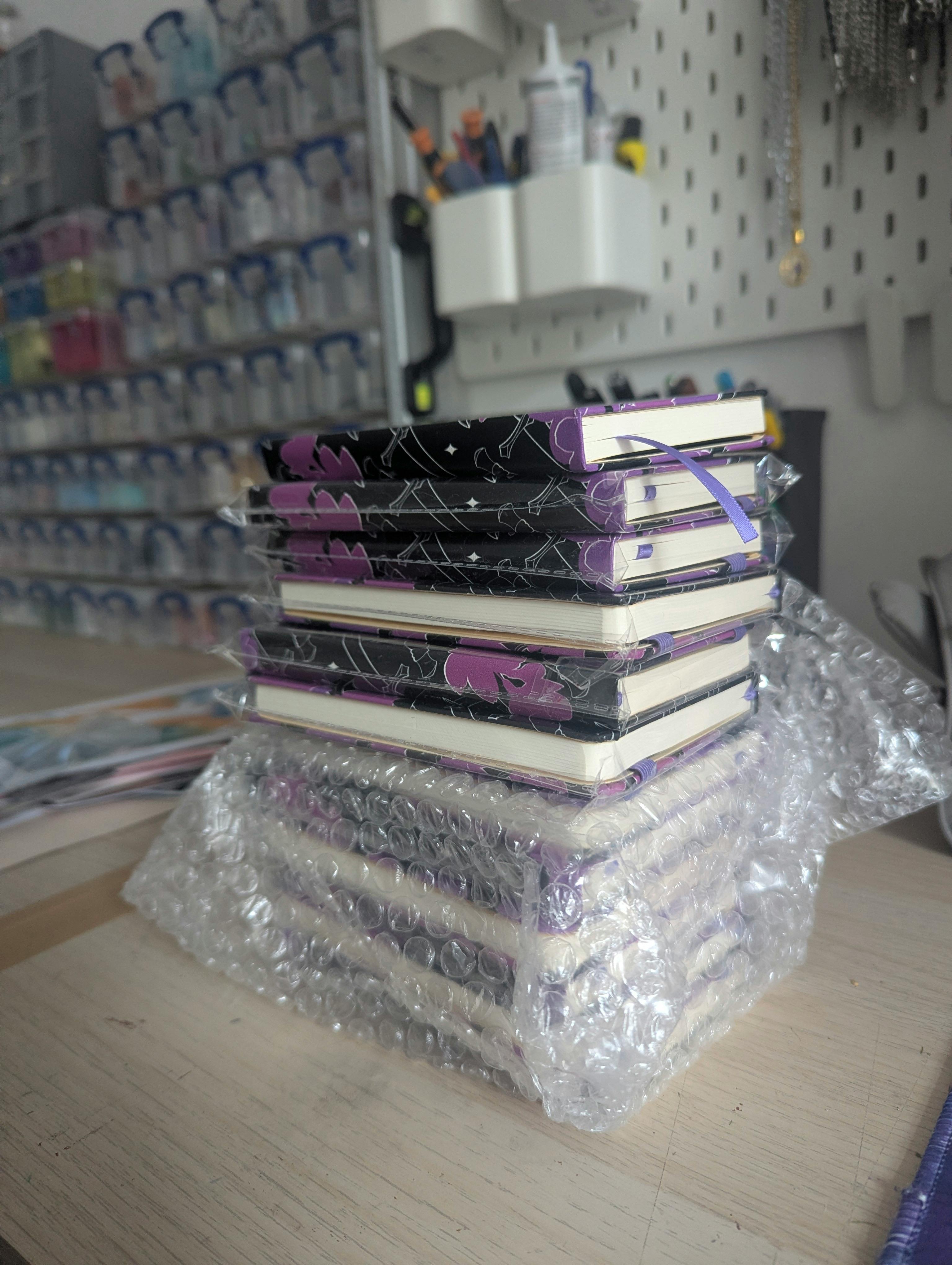 One, i fucked up! 😅 In my hurry to order notebooks, i ordered them in the wrong size!😂 Dont worry, i have already ordered them again in the right size, but meanwhile you get to see these adorably tiny notebooks and appreciate the quality. NGL, they are so damn cute and after the initial disappointment i just chuckled. I will make them available on my shop after the project is fulfilled.