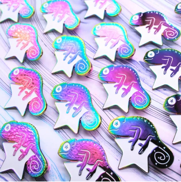 Amazingly adorable chameleon pins by LunaLotusUK on etsy