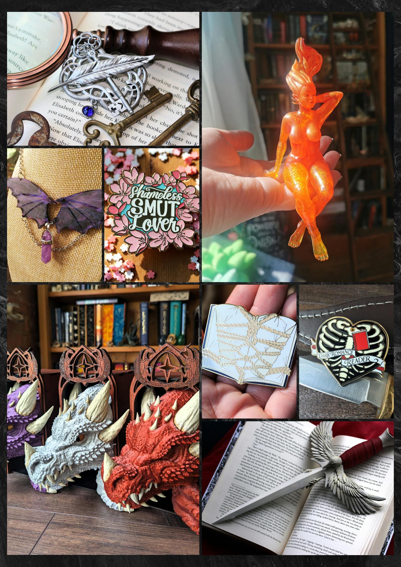 As well as backing us for the pins, you’ll be able to choose from several add-ons for this project! My main add-ins will be a set of book books/display frames with gorgeous detailed ties that can be used as decor! Choose from these two different designs: