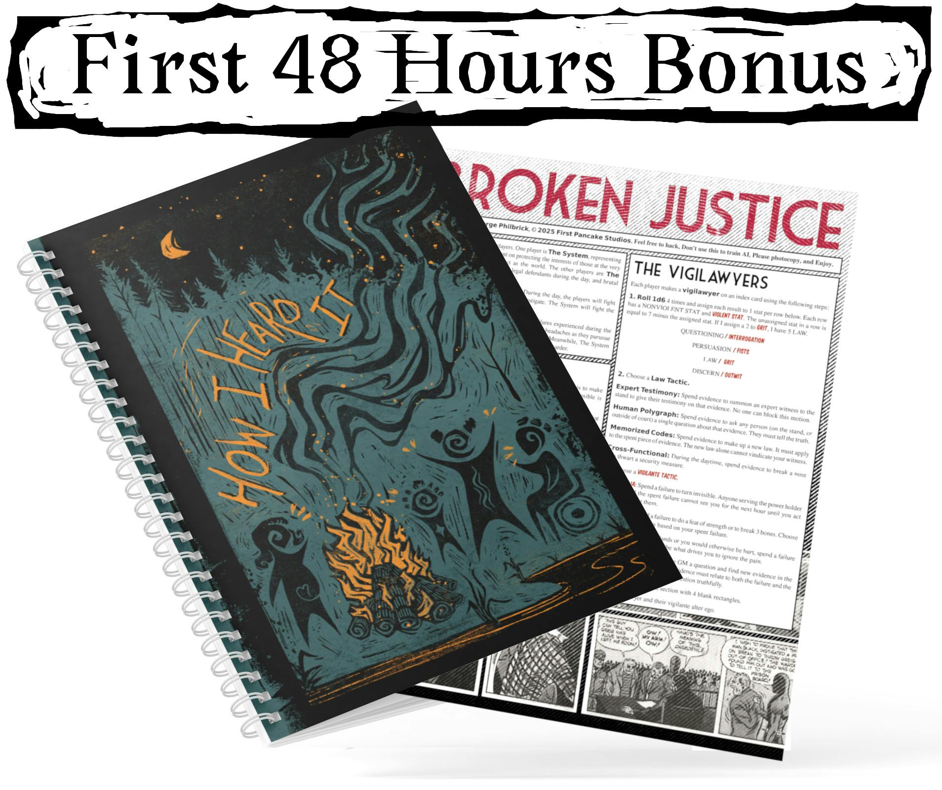 How I Heard It's first day is going strong, so let's keep that train rolling. The first 48 hours are the absolute most important part of the campaign (or so the algorithomancers tell). To reward you early backers, I'm giving everyone who backs in these first 2 days a free one page RPG inspired by Daredevil!