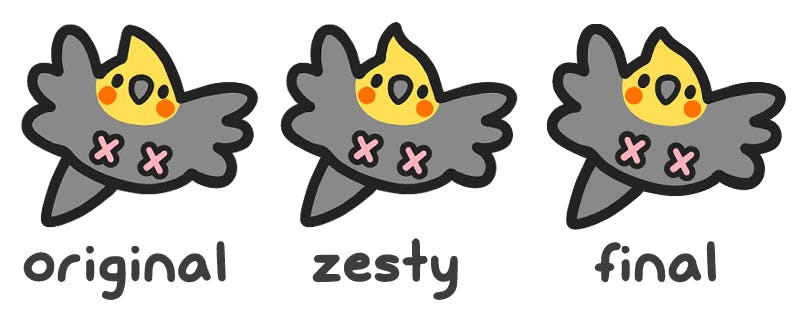The original crest was using the same one as the cardinal but it just wasn't right to me. Cardinals have those dumb pointy crests, but while cockatiel crests can go sky high, they have that sassy little swoop.