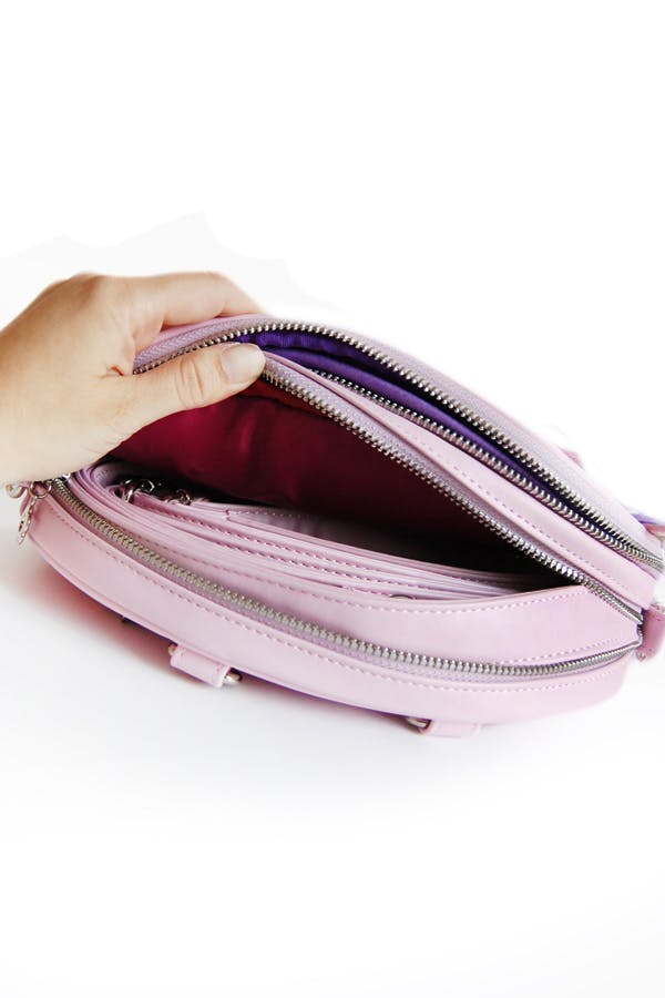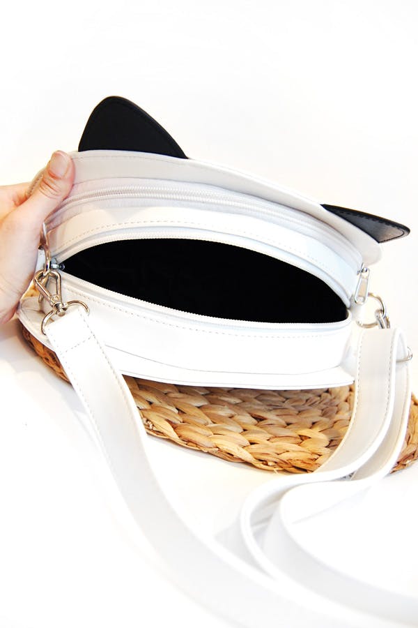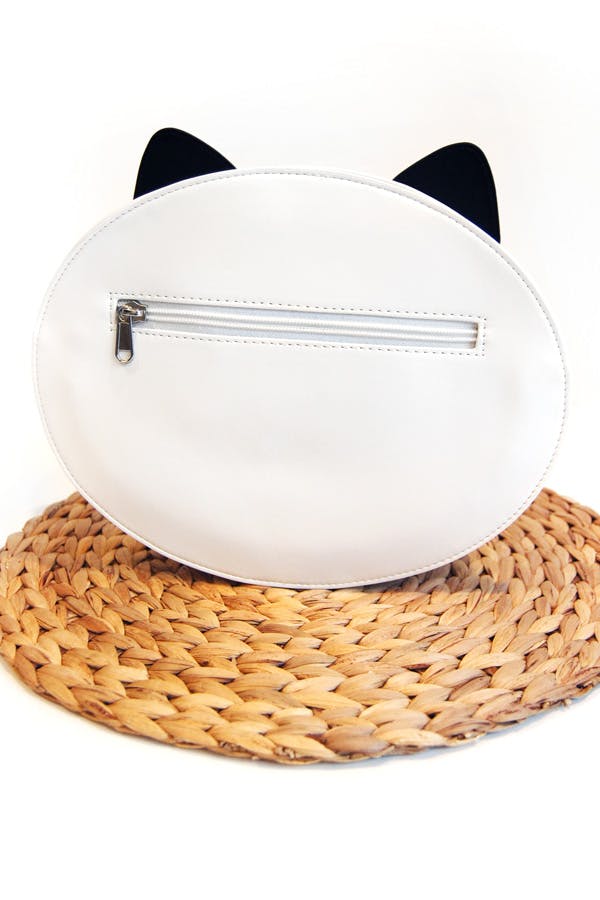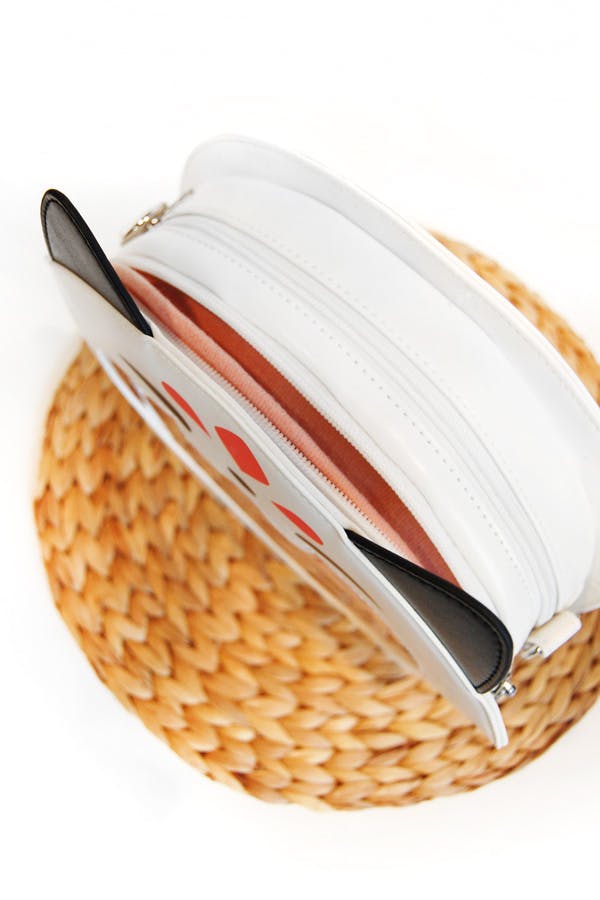 We want to note a crucial difference between White Hungry Queenie Ita and the Black and Lilac Sleeping Fox Itas: The sleeping foxes can be worn as either a backpack or a shoulder bag and they come with straps for both options! White Hungry Queenie is just a shoulder bag and she only comes with one long shoulder strap!