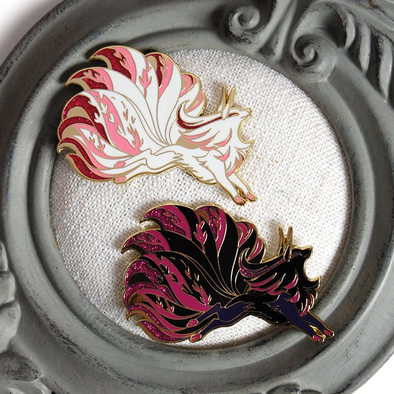 Hello! Welcome to our holiday campaign for Queenie (the white fox) and Dawnsing (the many colors of fox!) Here you shall find plushies that already exist and are ready for shipping this December. We've also included a few other items such as backpacks, ita bags, and enamel pins!