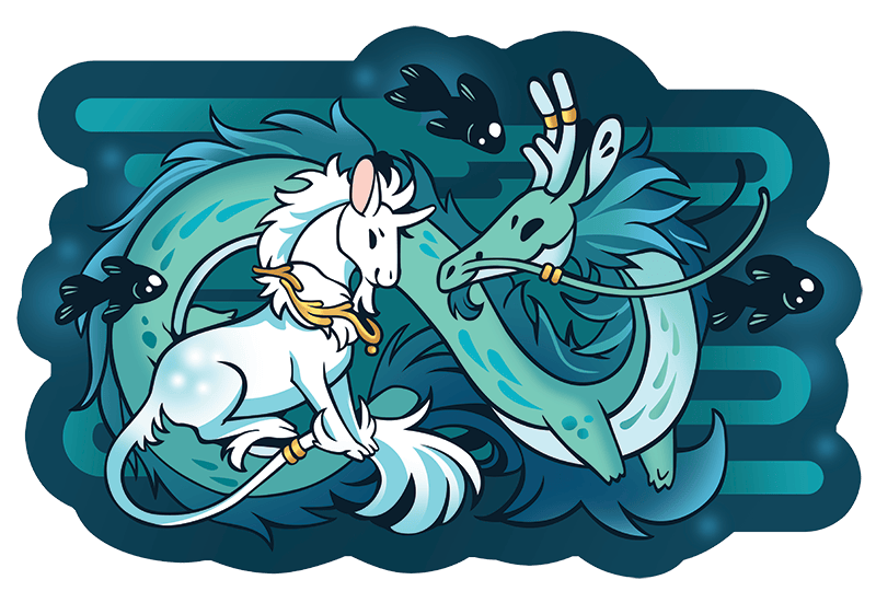 Back both of our campaigns for any physical item of any amount and get two free stickers! We've designed a super cute sticker of Fred and Moon Fish out for a swim together! PondHQ has designed an extremely adorable sticker of Rain Dragon napping with a frog and turtle pile. Our Fred and Moon Fish out for a swim sticker will be about 3" tall and 1.5" wide, vinyl, and laminated with holographic sparkle stars!