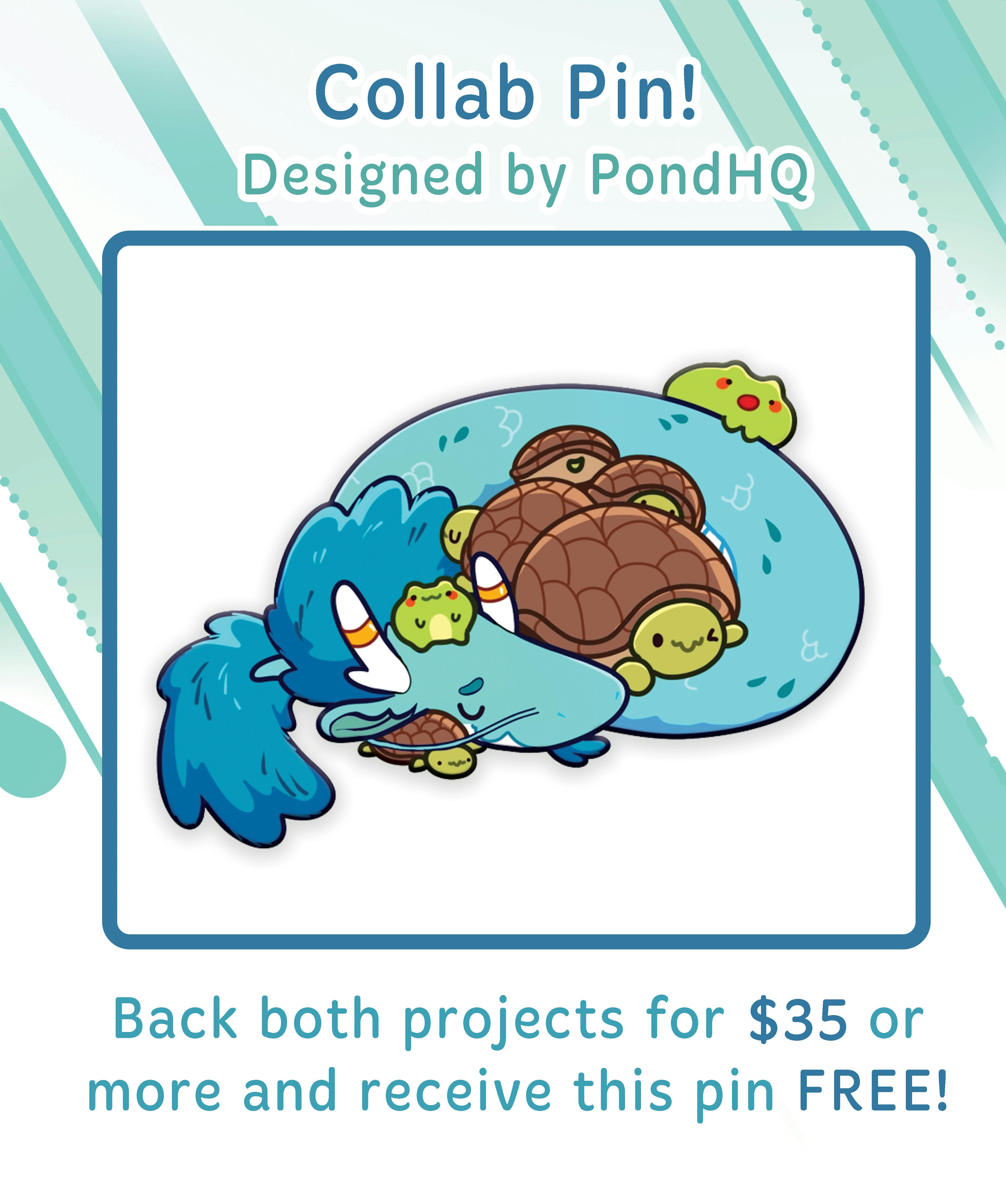 And here's the pin you will receive from PondHQ when backing both projects for $35 or more!