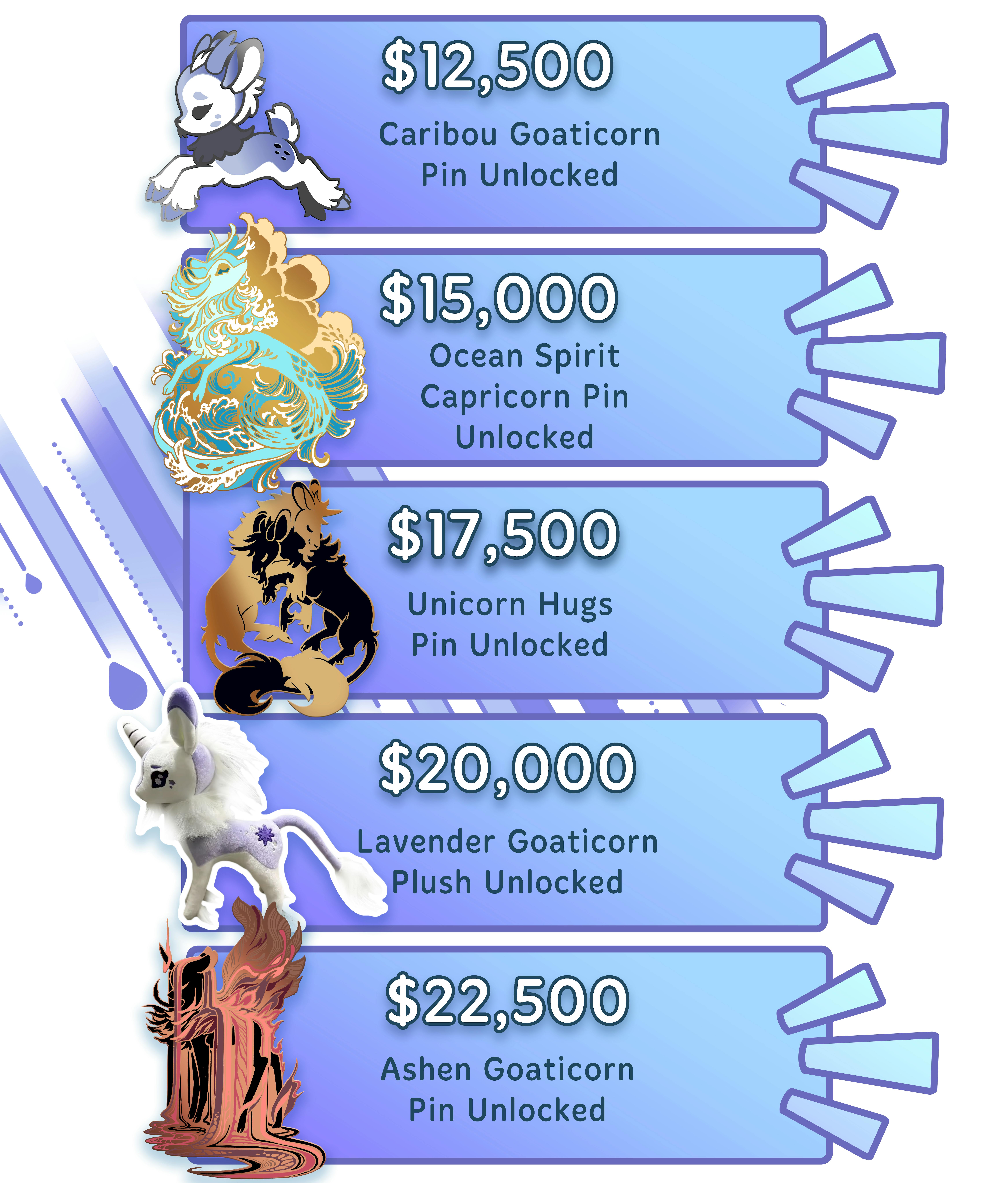 The next plush to unlock is Capricorn Goaticorn! With a fabulous fish curved fish tail and big fluffy hooves like Caribou Goaticorn, she is sure to be a unique plush! Can we make her happen? Not much time left...but maybe??