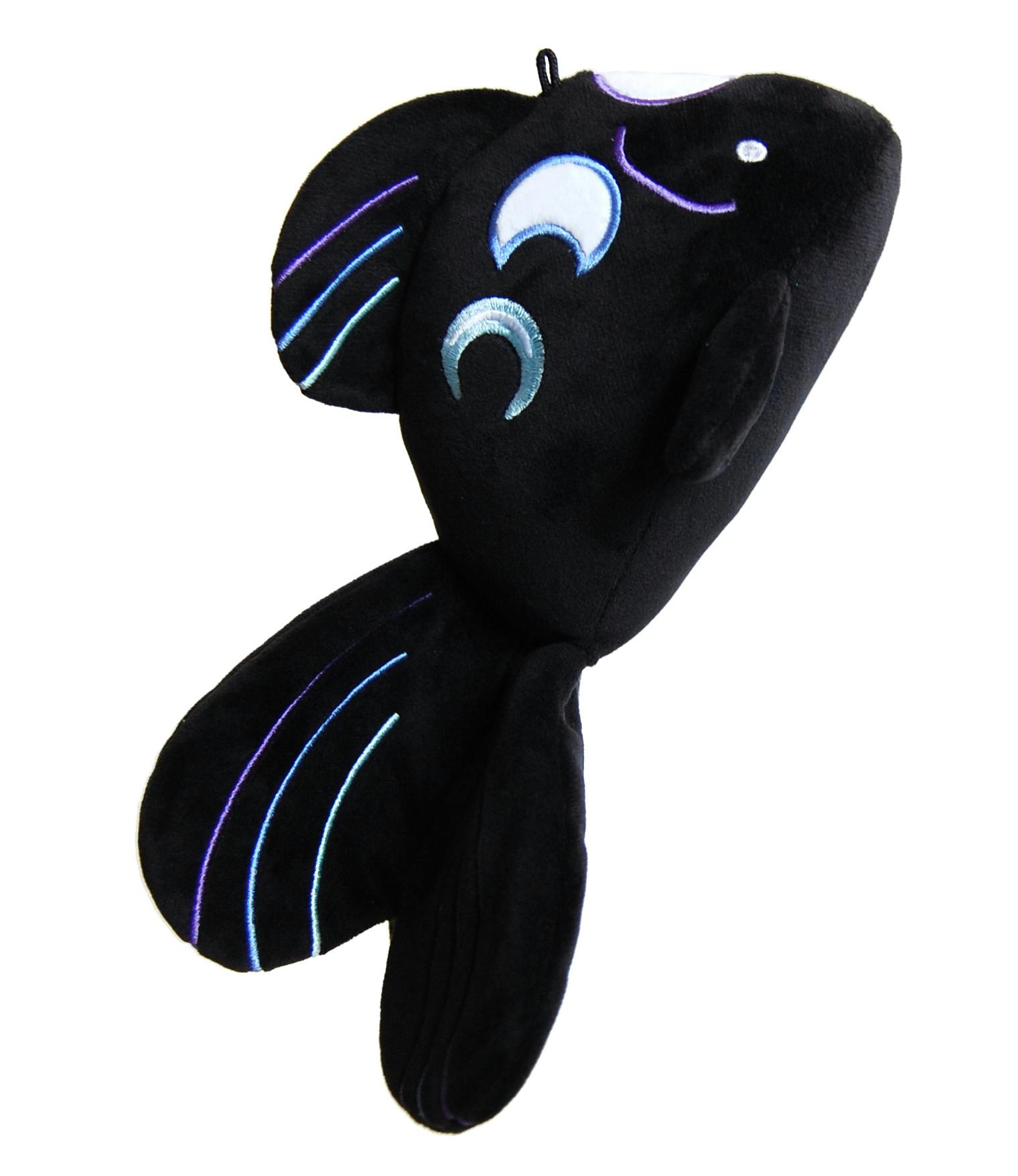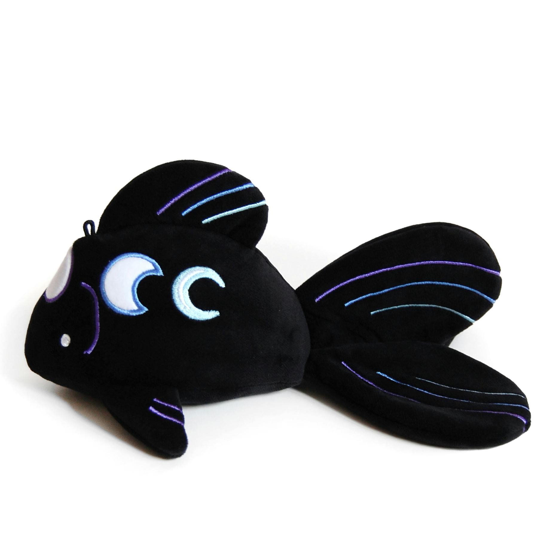 After the success of Ginkgo Gold Fish, we decided we wanted to design even more fishy friends! Black Moon Fish is another little guy! He measures around 10 inches long, with moon phases embroidered on his head and sides.
