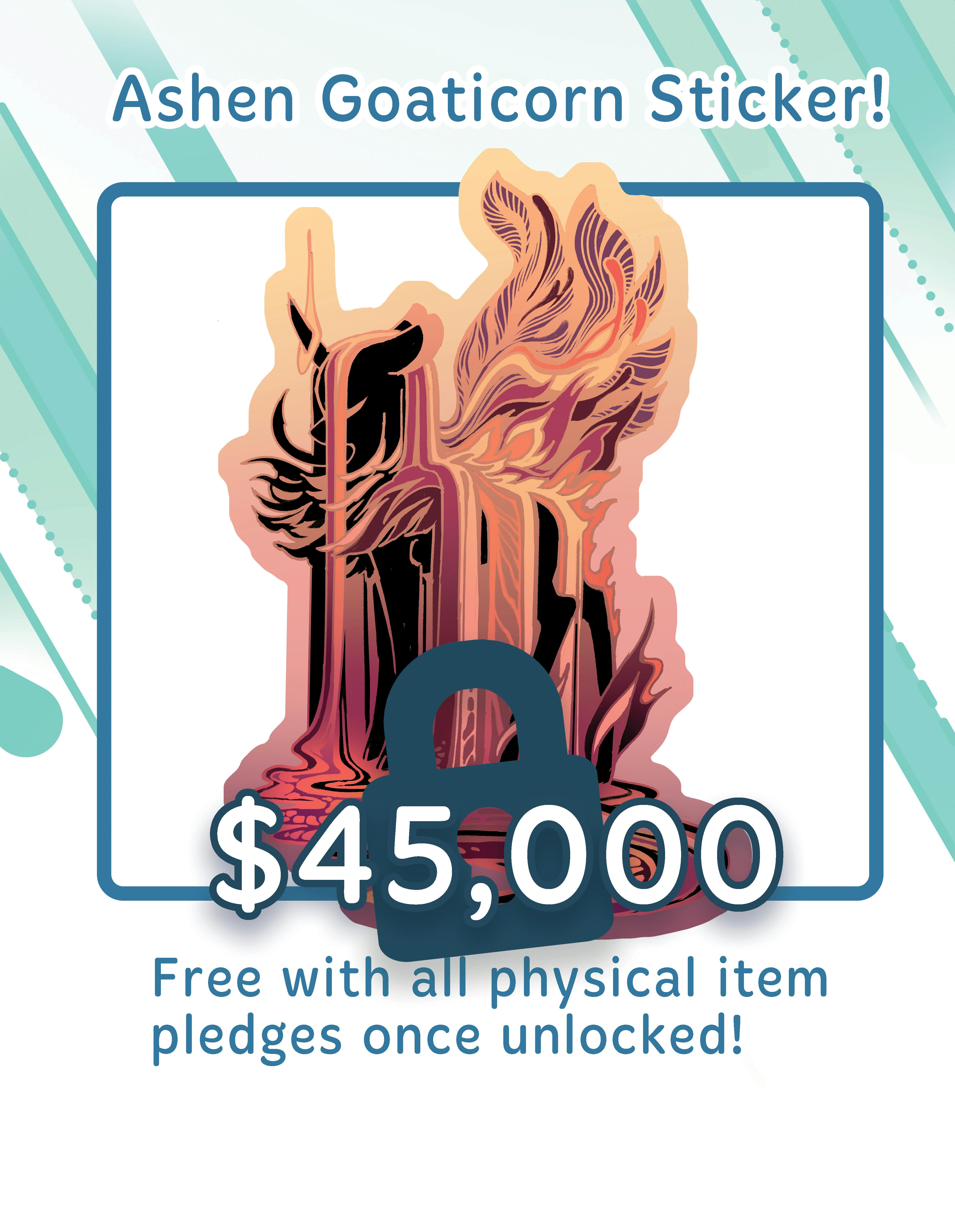 There are three free stickers to unlock on our way to Star Fawn! So far, Goaticorn Sea Foam is unlocked, Ashen Wings and Fire Dragon are next! All three will be holographic laminated vinyl stickers.