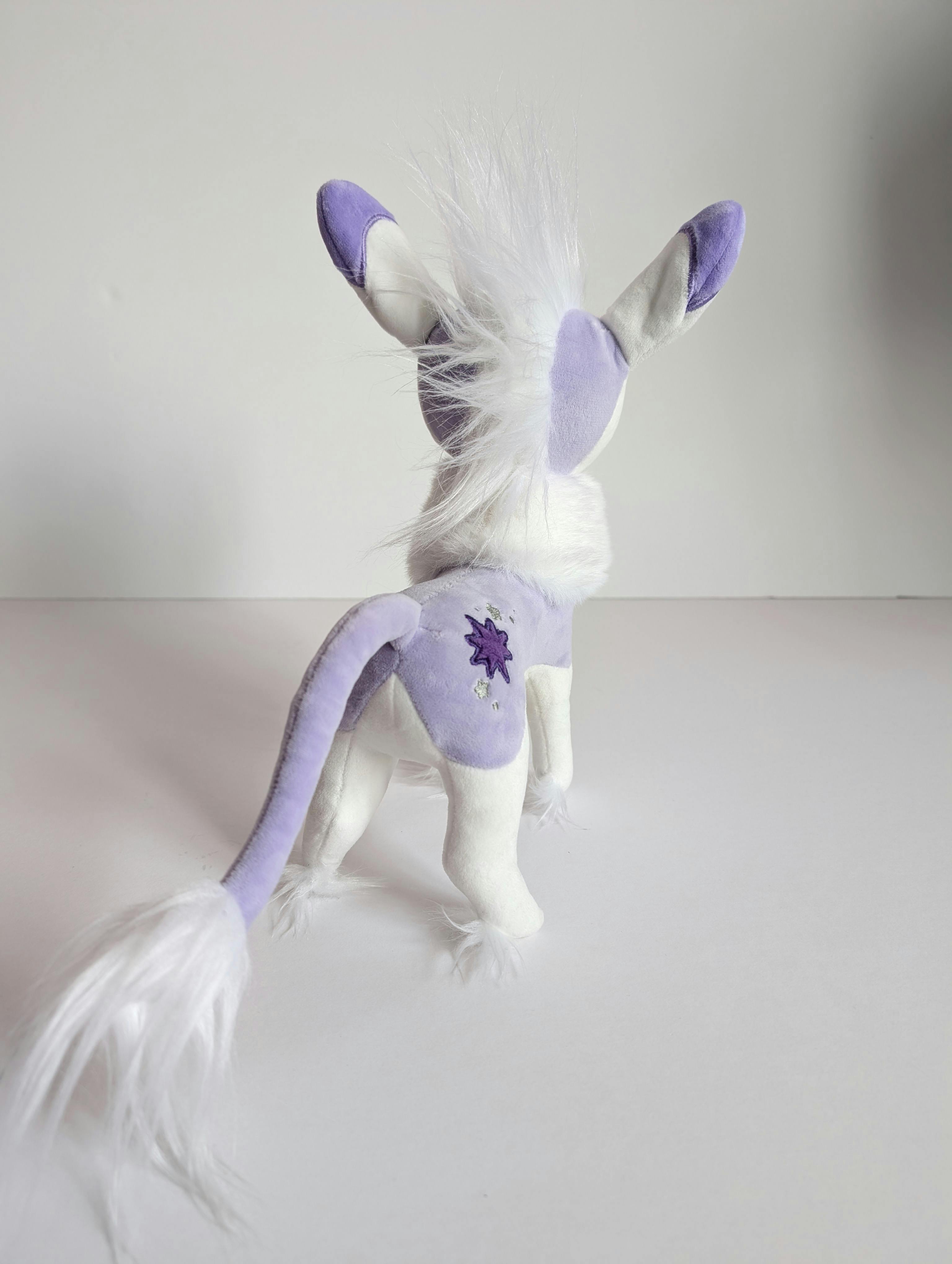 We are requesting one small change (purple minky on the back of her ears instead of white). But she is a very soft and magical baby!