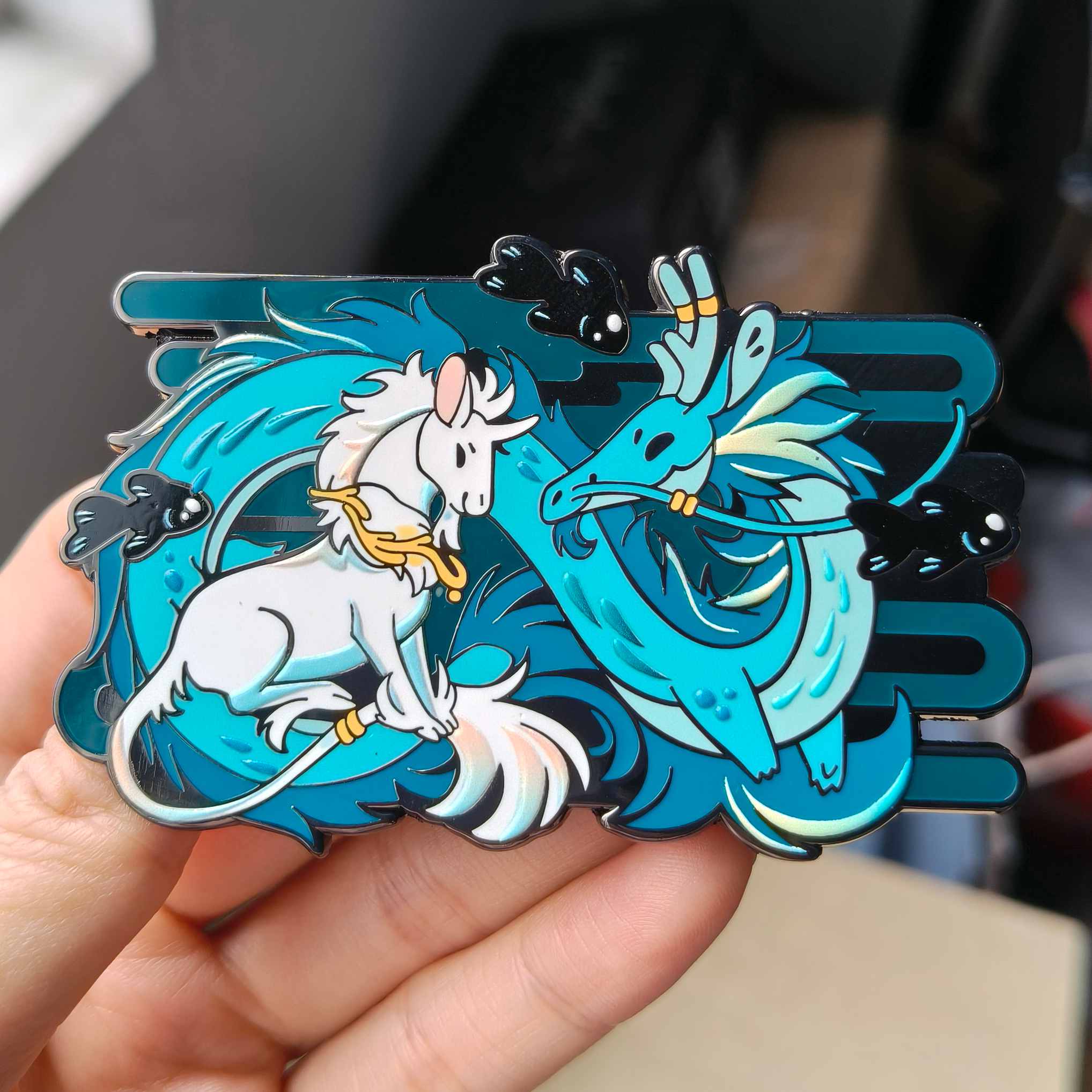 Free mini pins are definitely happening! And the free holographic sticker pack is currently unlocked...? I say currently because some big pledges could drop and then we would lose the dragon sticker. (Please don't read this update and drop your pledge haha....)