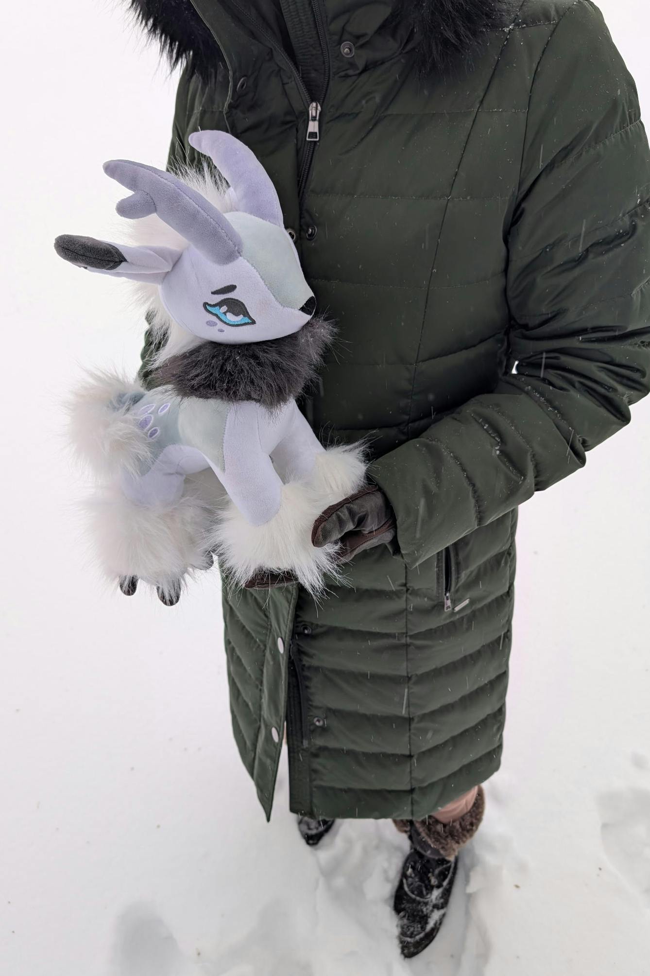 We took him out to frolic in the snow, and even though I'm wearing a big coat, I hope you can get an idea of his size. I am a small person (5'2").