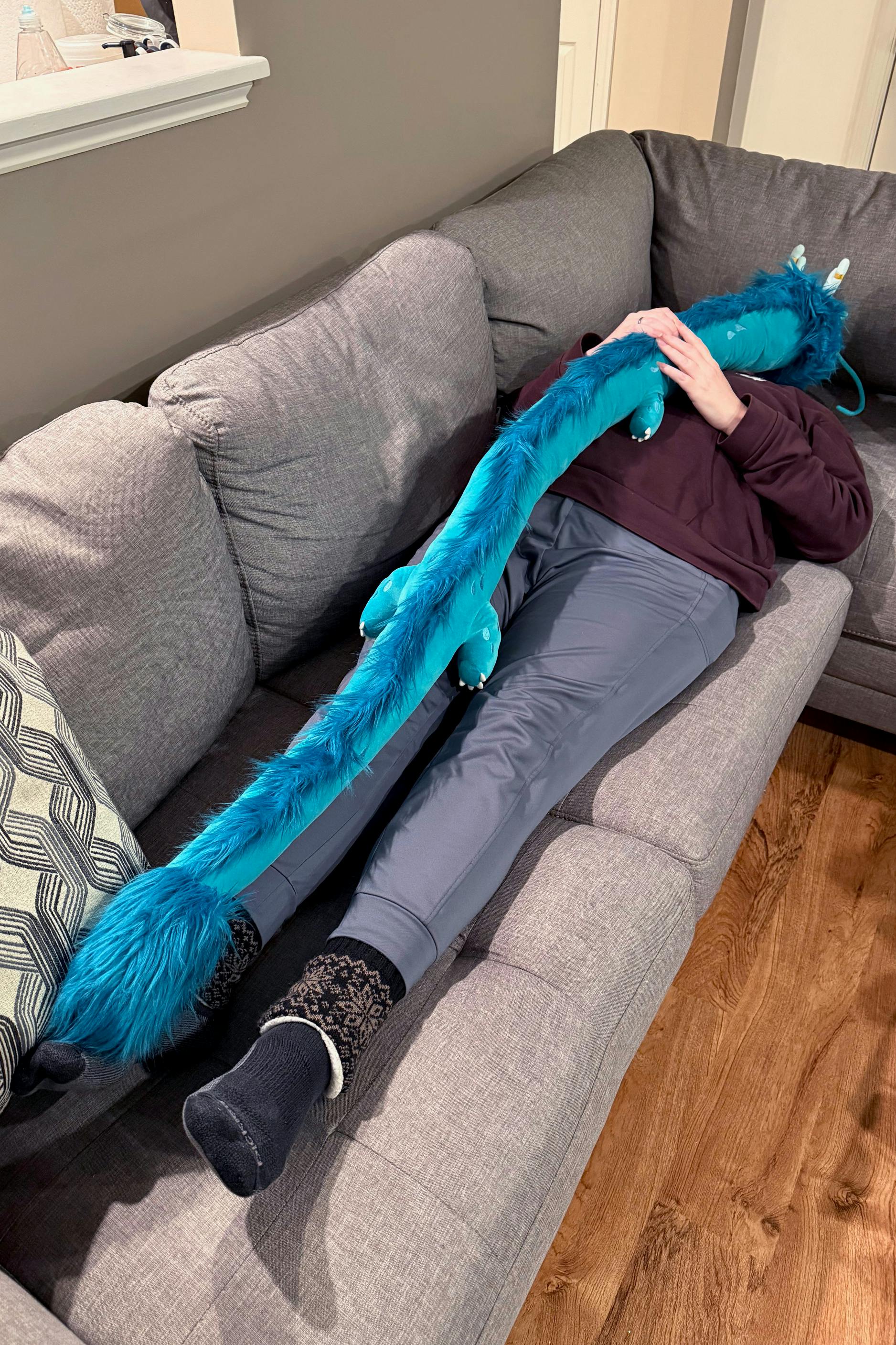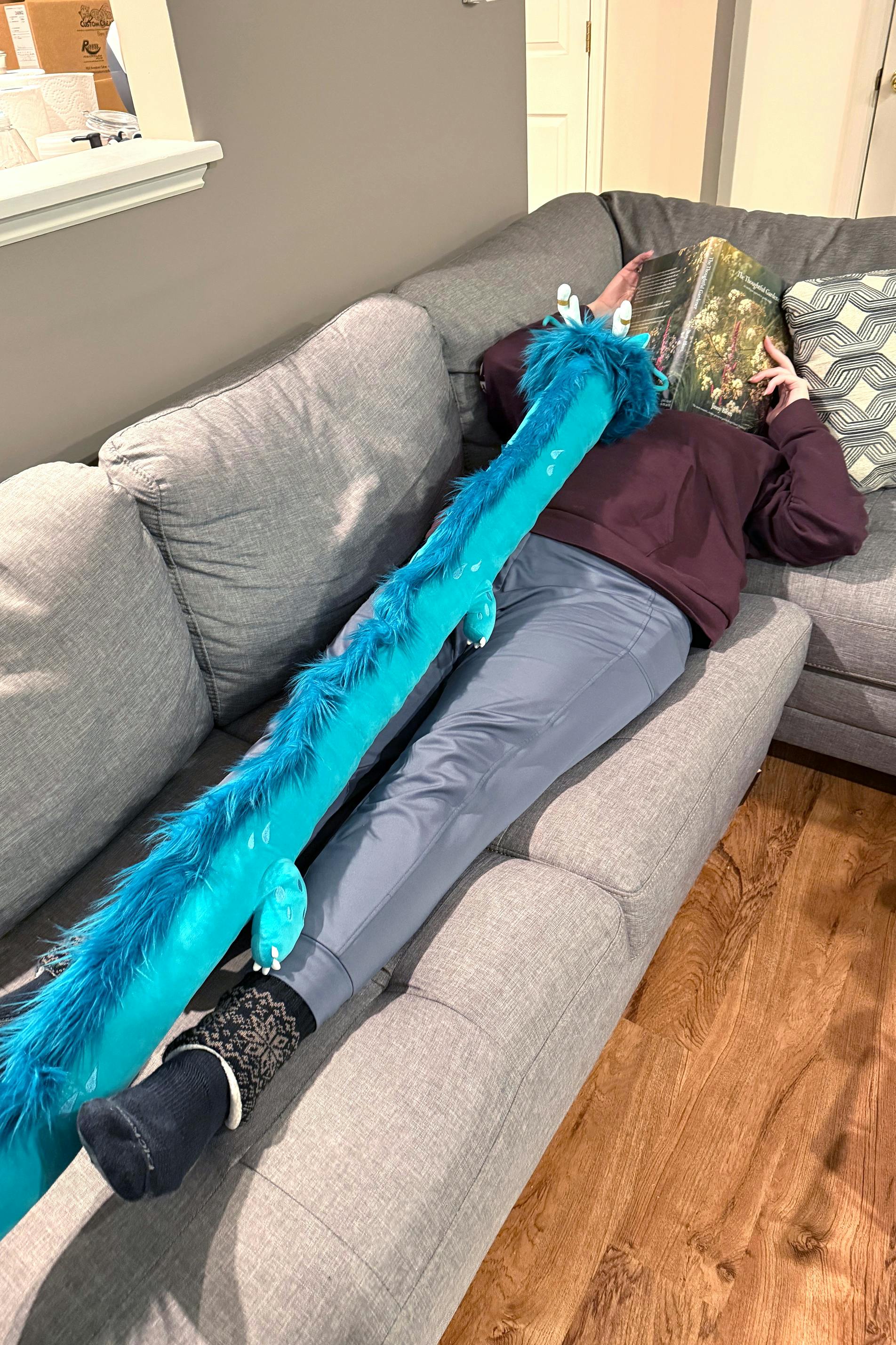 Additionally, measurements of Rain were requested. He is 14 inches around the neck and then tapers to 9 inches at the tail. Hopefully this will help you all see how big this noodle is!