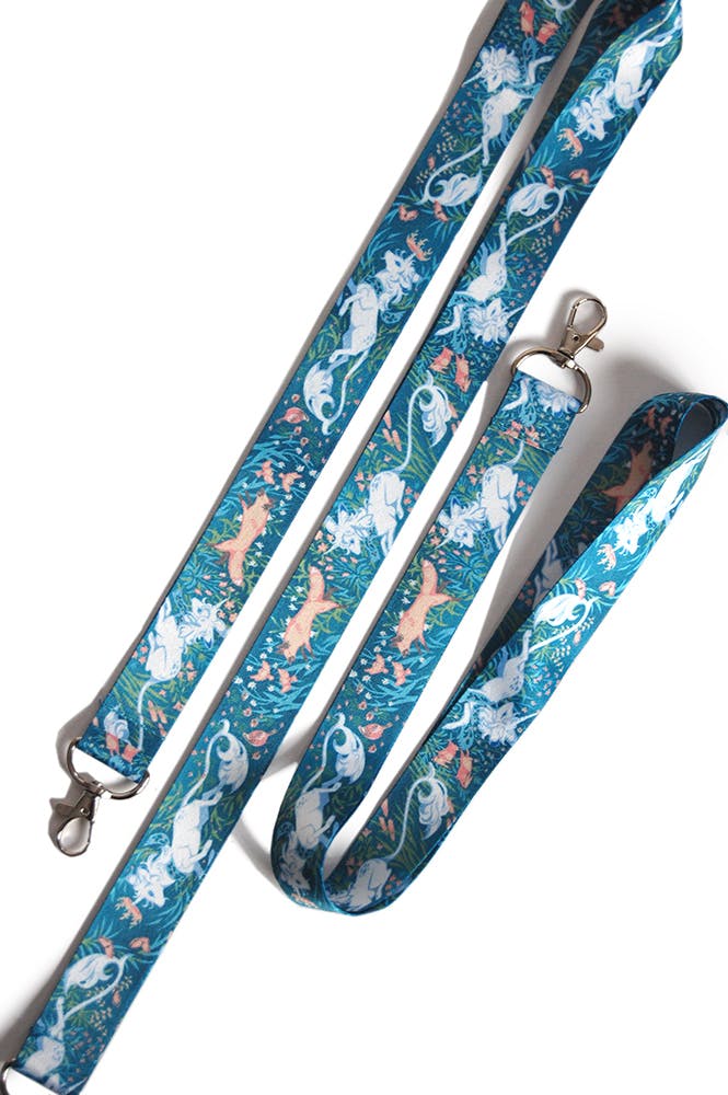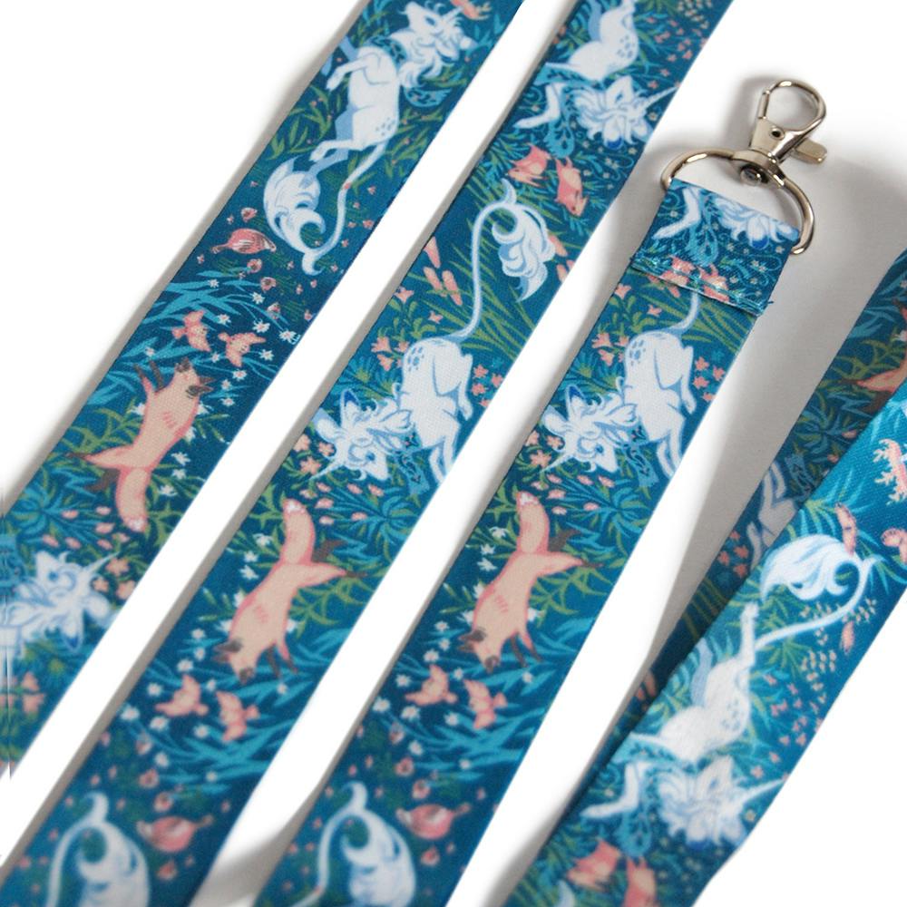 A beautiful unicorn plays in the meadow with her forest friends. Repeating pattern features unicorns, birds, bunnies, and, of course, foxes. There are two versions to choose from: teal and green.