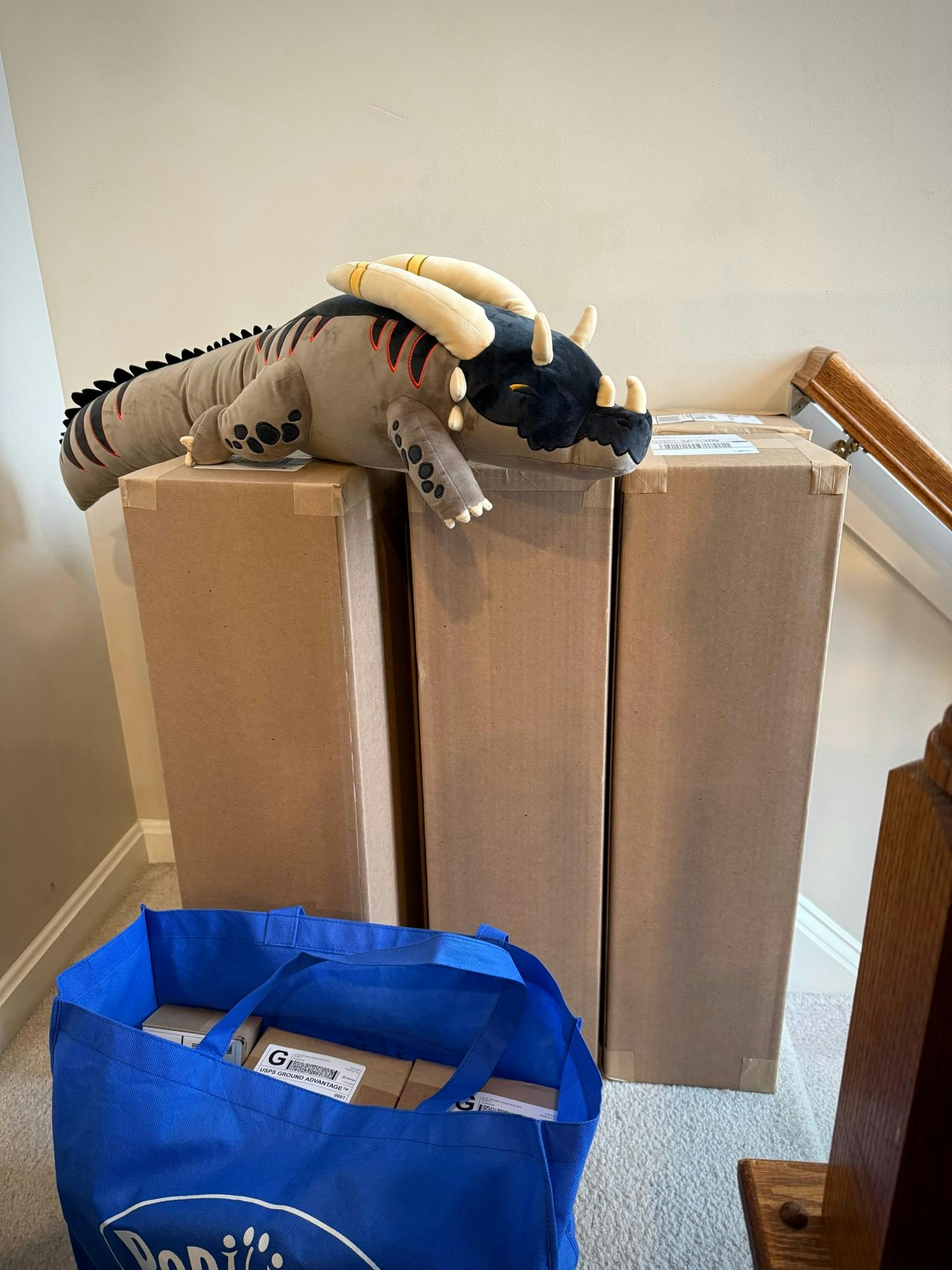 Shipping is ongoing and we have currently shipped 80 of 457 orders! Please behold the dragon sized boxes! This is what has made the shipping so pricey, but we really wanted her to arrive in a nice condition!