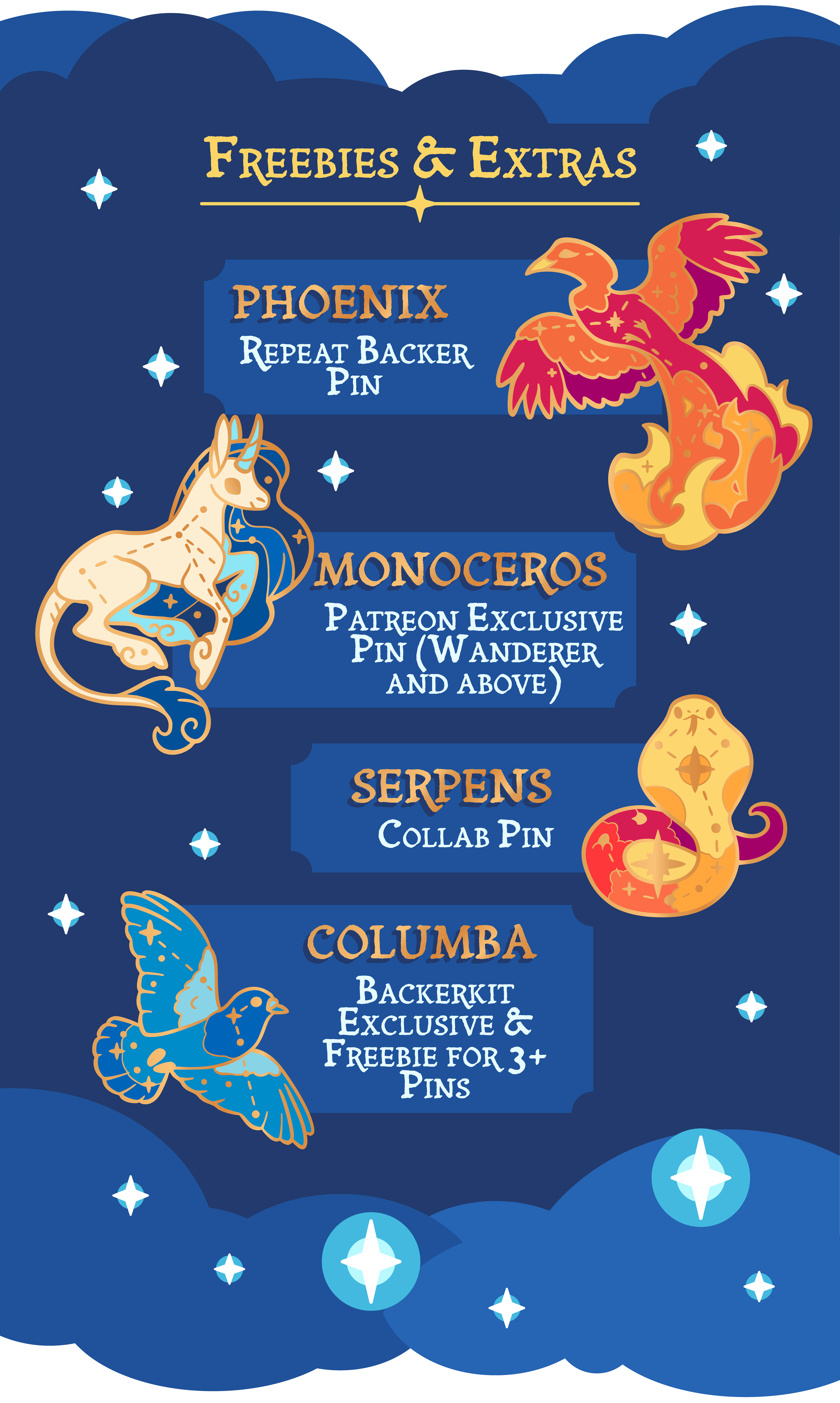 In just under 36 hours the Celestial Companions will launch! Take a look at all the Freebies and Backerkit Exclusive Companions you can collect.