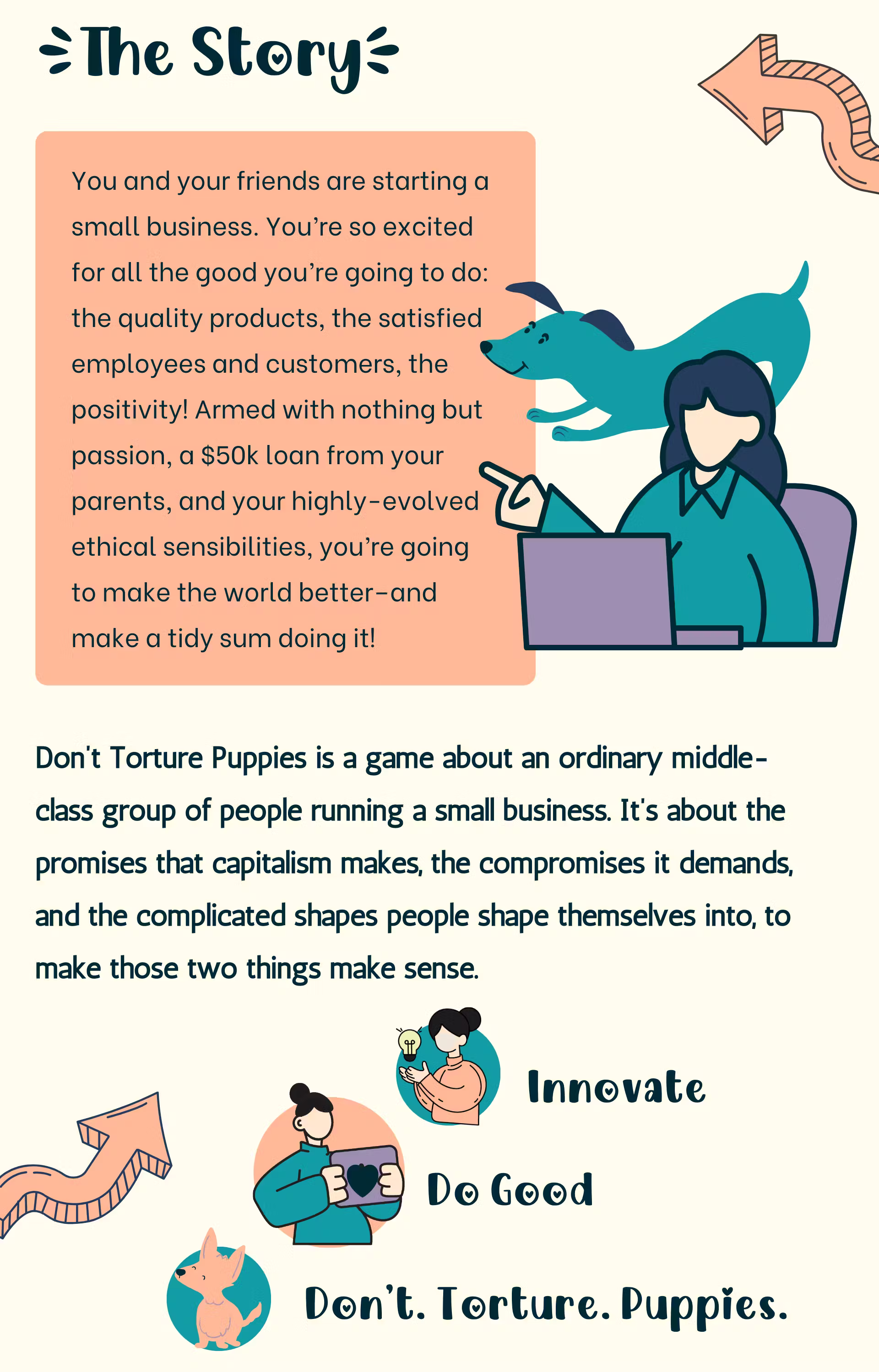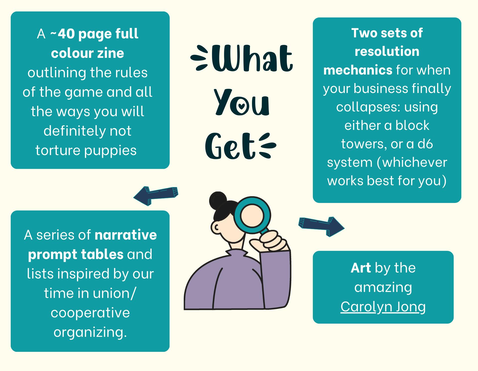 A story game about the promises that capitalism makes, the compromises it demands, and the complicated shapes people shape themselves into, to make those two things make sense.