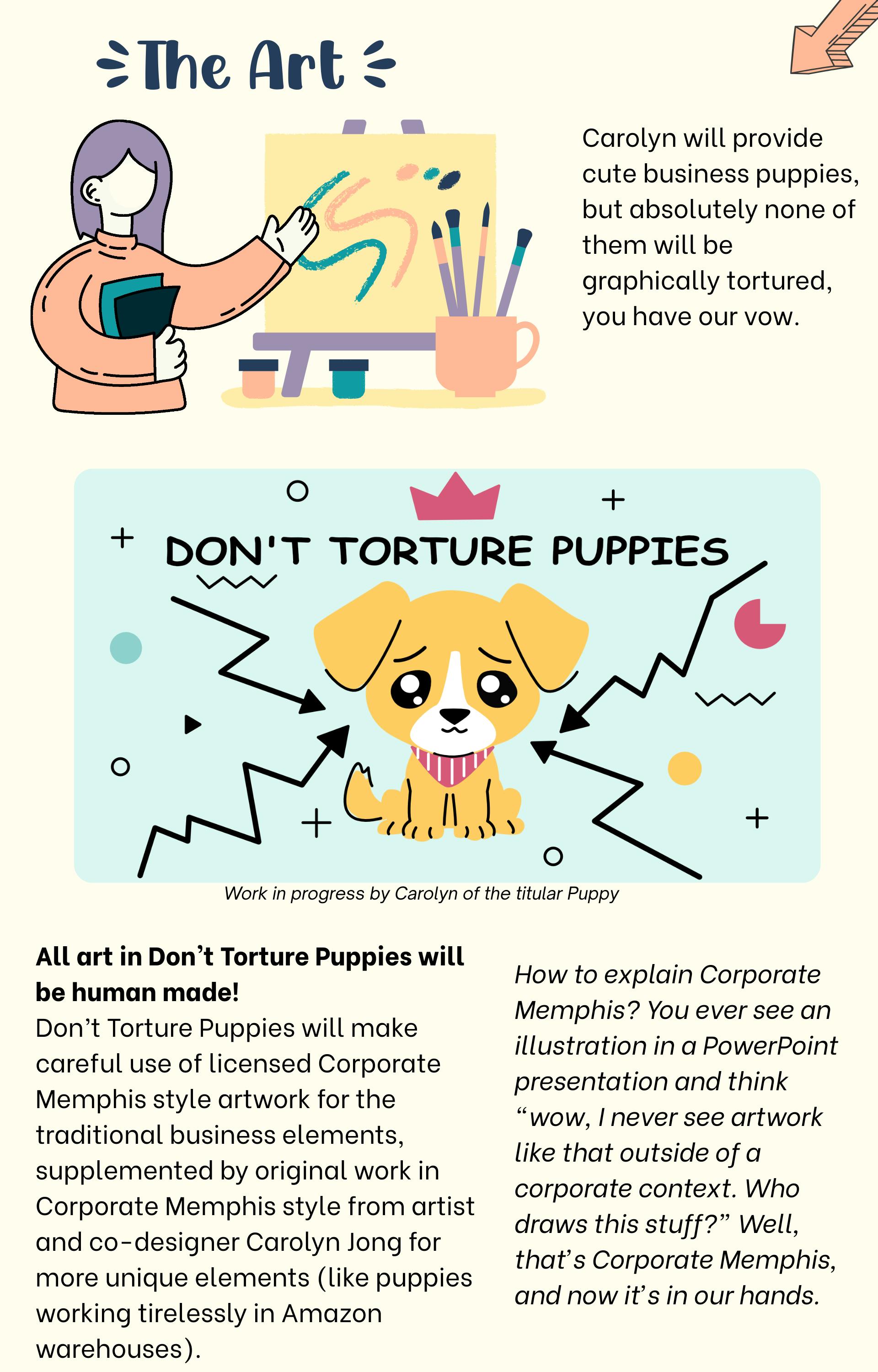 Be sure to back The Black Tower Hack as well as Don't Torture Puppies at any tier to receive two pieces of extra-absurd, multi-dimensional, anti-capitalist content!