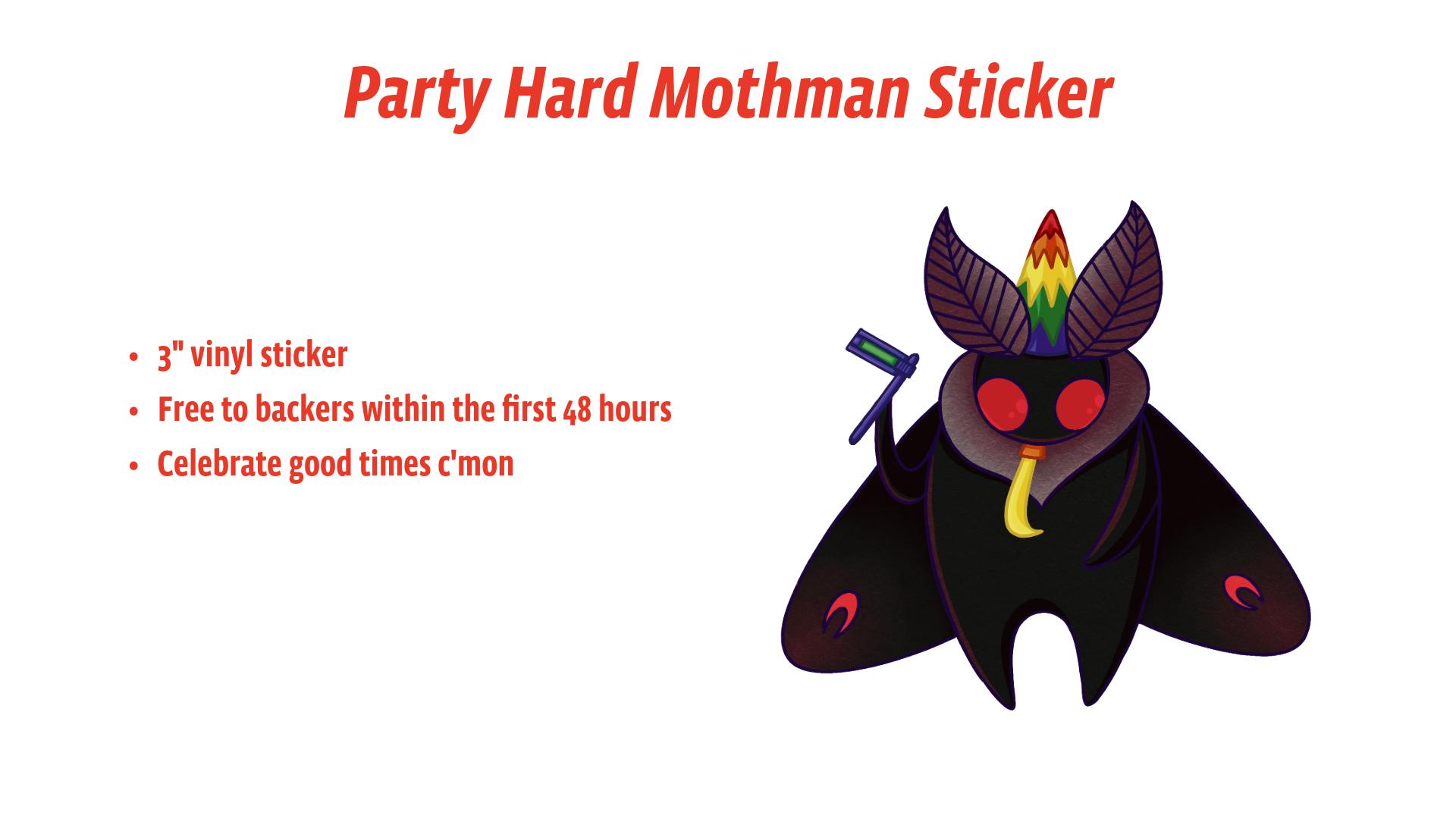 Those who back Mini-Mothman within the first 48 hours will also receive a free Party Hard Mothman sticker!