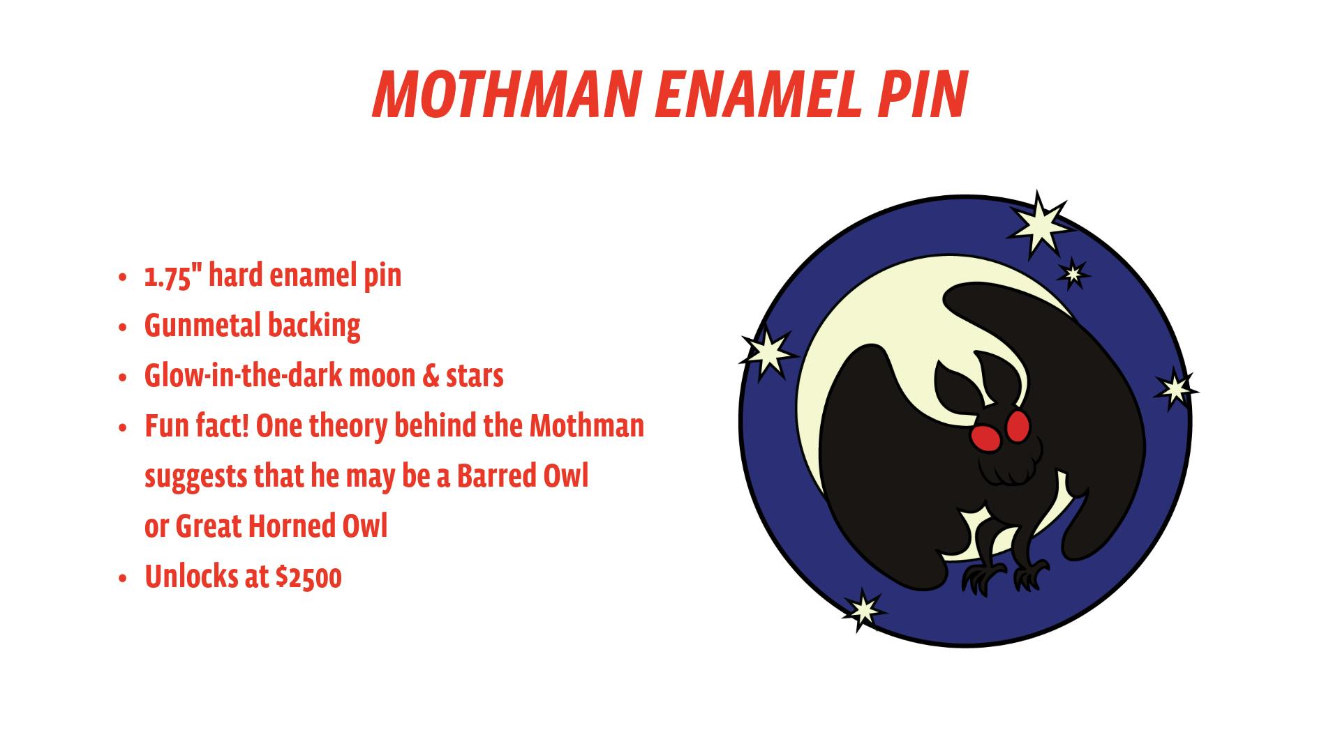 All pledges also get a free vinyl sticker of Sheep Moth Mothman!