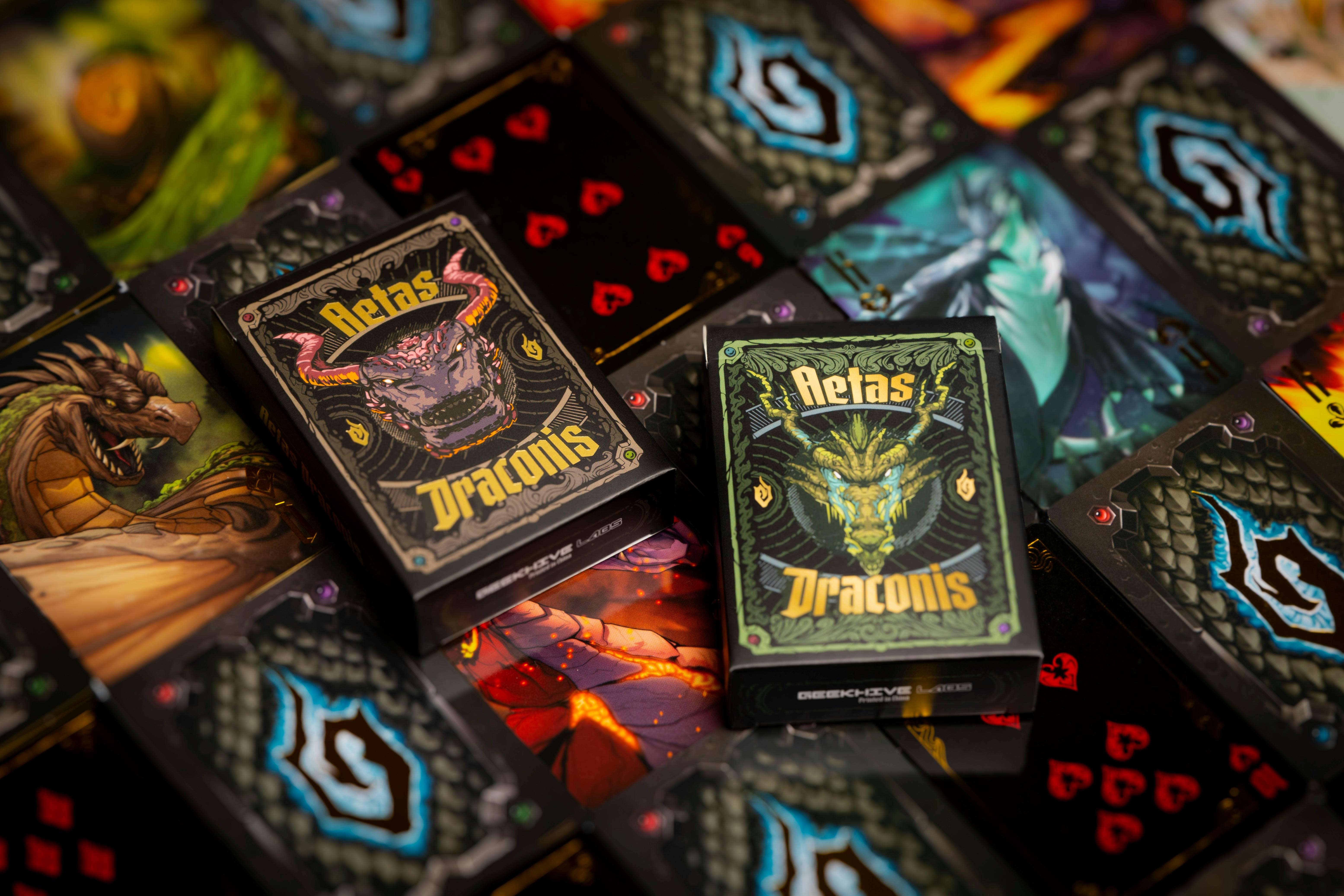 My first Pocketopia, launching in May. A limited-edition cartomancy oracle and playing card deck inspired by dragons and the four elements, featuring original games.