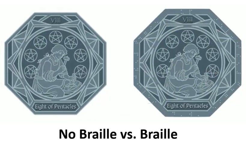 Additionally, we had a backer reach out to ask about using these if visually impaired. After mulling it over and working on the design a little bit, we did a modified design that incorporates Braille with the title of the coin on the edge of the borders.