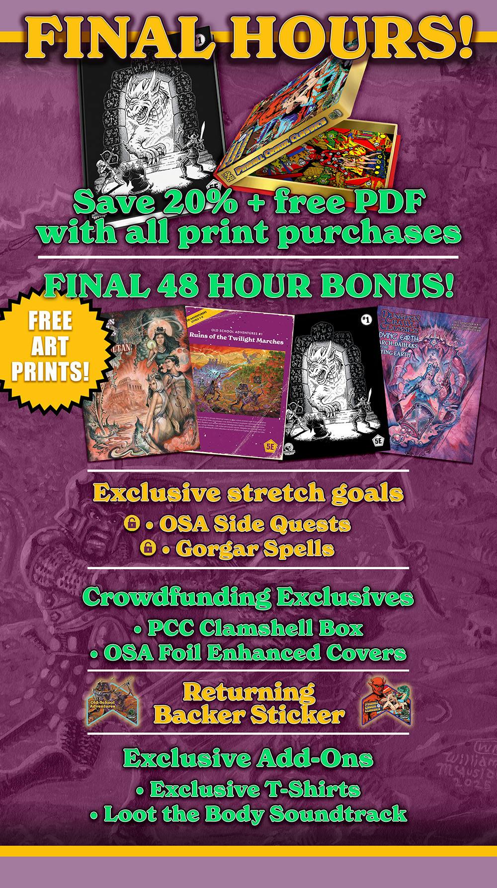 We’re back with new products inspired by the classics and written for today: Old-School Adventures #1 and Pinball Crawl Classics! Plus add-ons for fans of DCC, MCC, XCC, DCC Dying Earth and more!