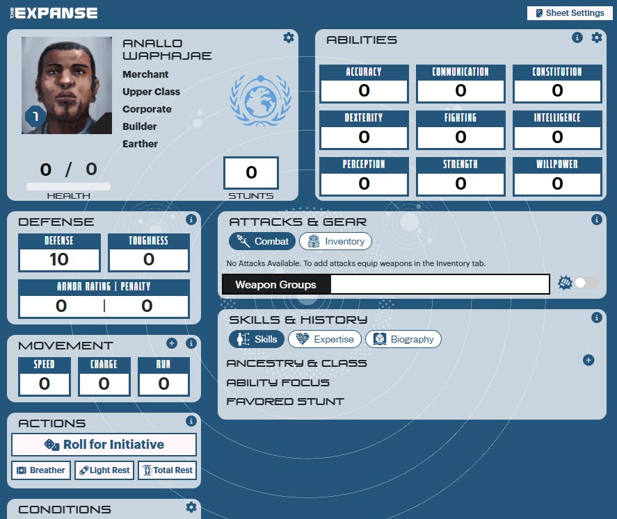 Here's a quick WIP of the official Character Sheet Jonesy is building though.