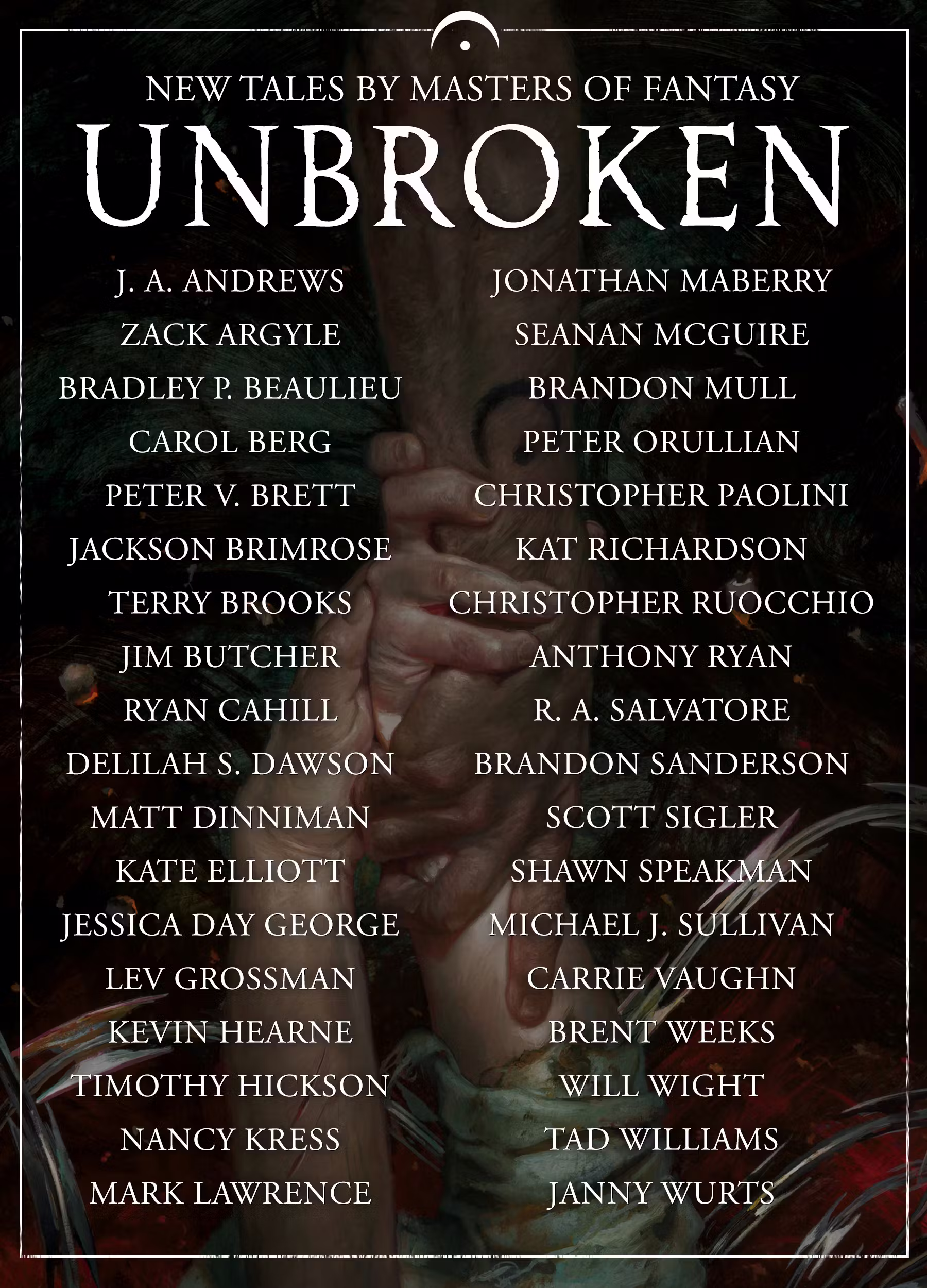 Author line-up for Unbroken is below as well. The book is finished and we just need quantities from the Kickstarter to put it into production. I'm not ashamed to say it will be the SF&F anthology of the year.