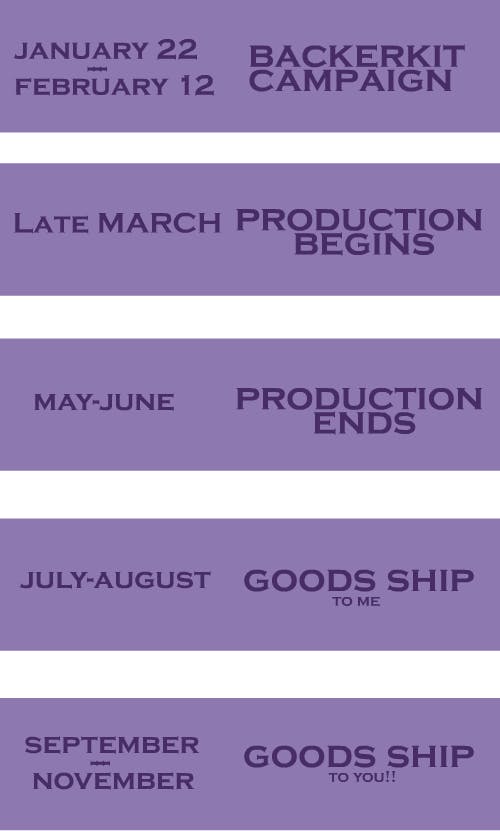 Here's a rough estimate as to the production timeline of creature feature items items! Please keep in mind delays might happen for any number of reasons, however I will keep backers fully updated every step of the way! This timeline is a rough estimate!