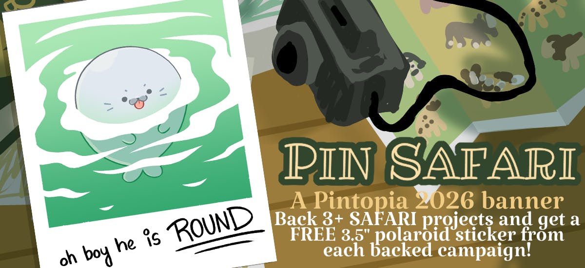 Check out the smaller banner within Pintopia, Pin Safari! If you back 3+ Pin Safari-specifc campaigns, you'll get an additional 3" polaroid sticker from each Pin Safari project you backed, no additional free! Here's a snap shot of the sticker I'm offering~!