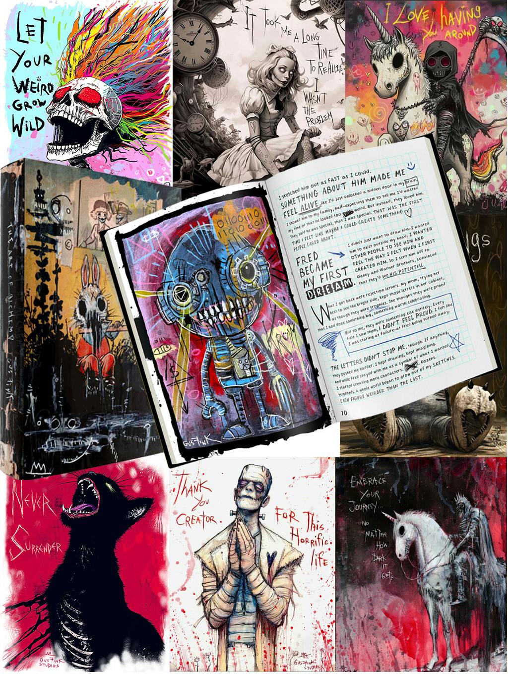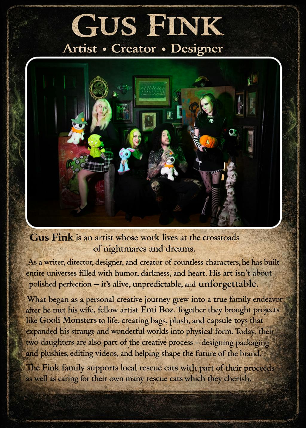 Designed to look and feel like one of Gus Fink’s personal sketchbooks, this premium 9×12 hardcover (300+ pages) is a deep dive into the dark and imaginative world he’s spent decades creating.